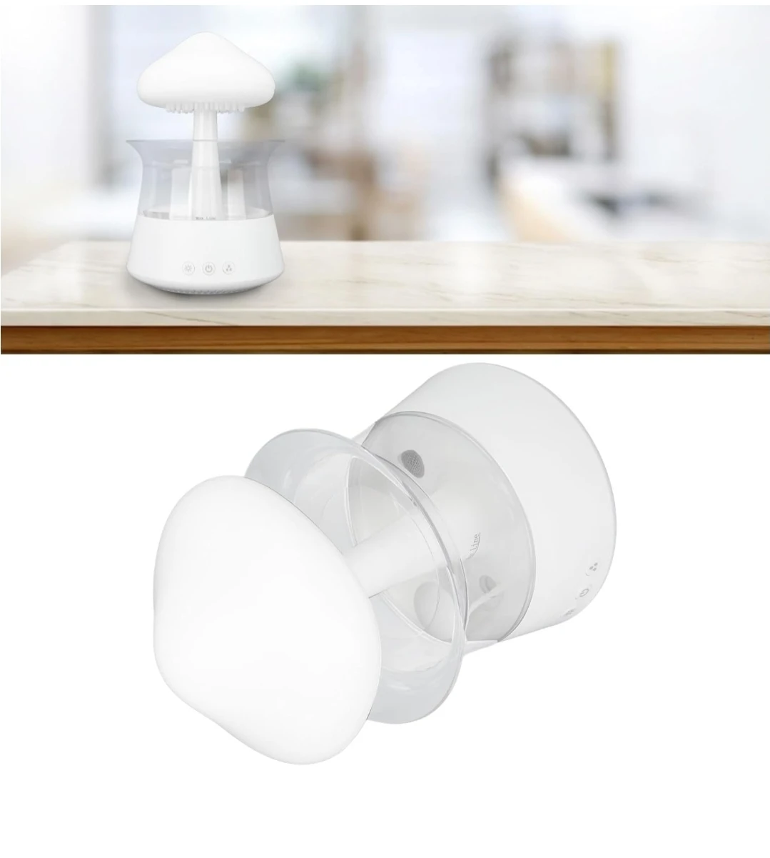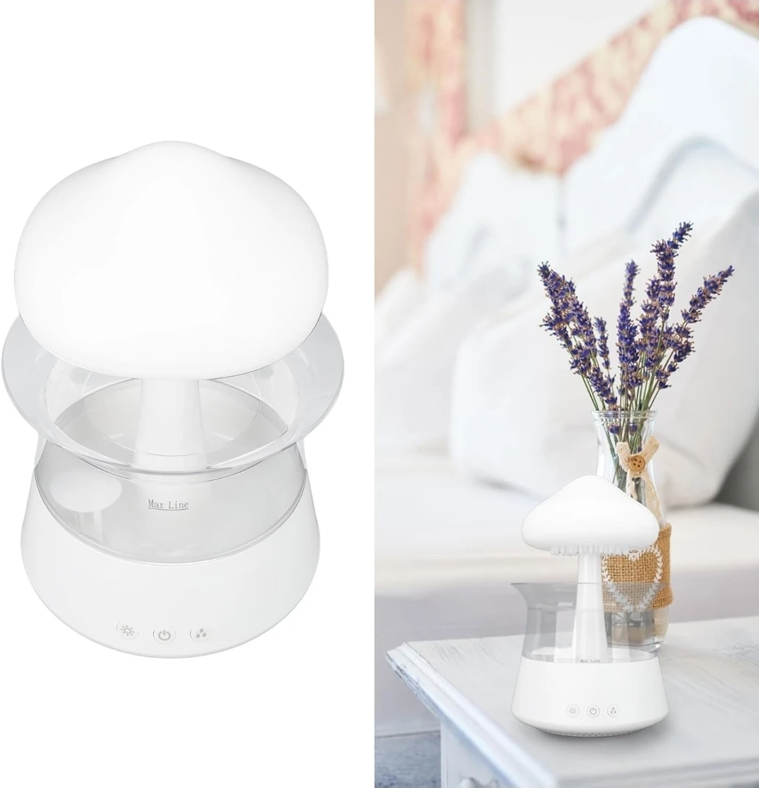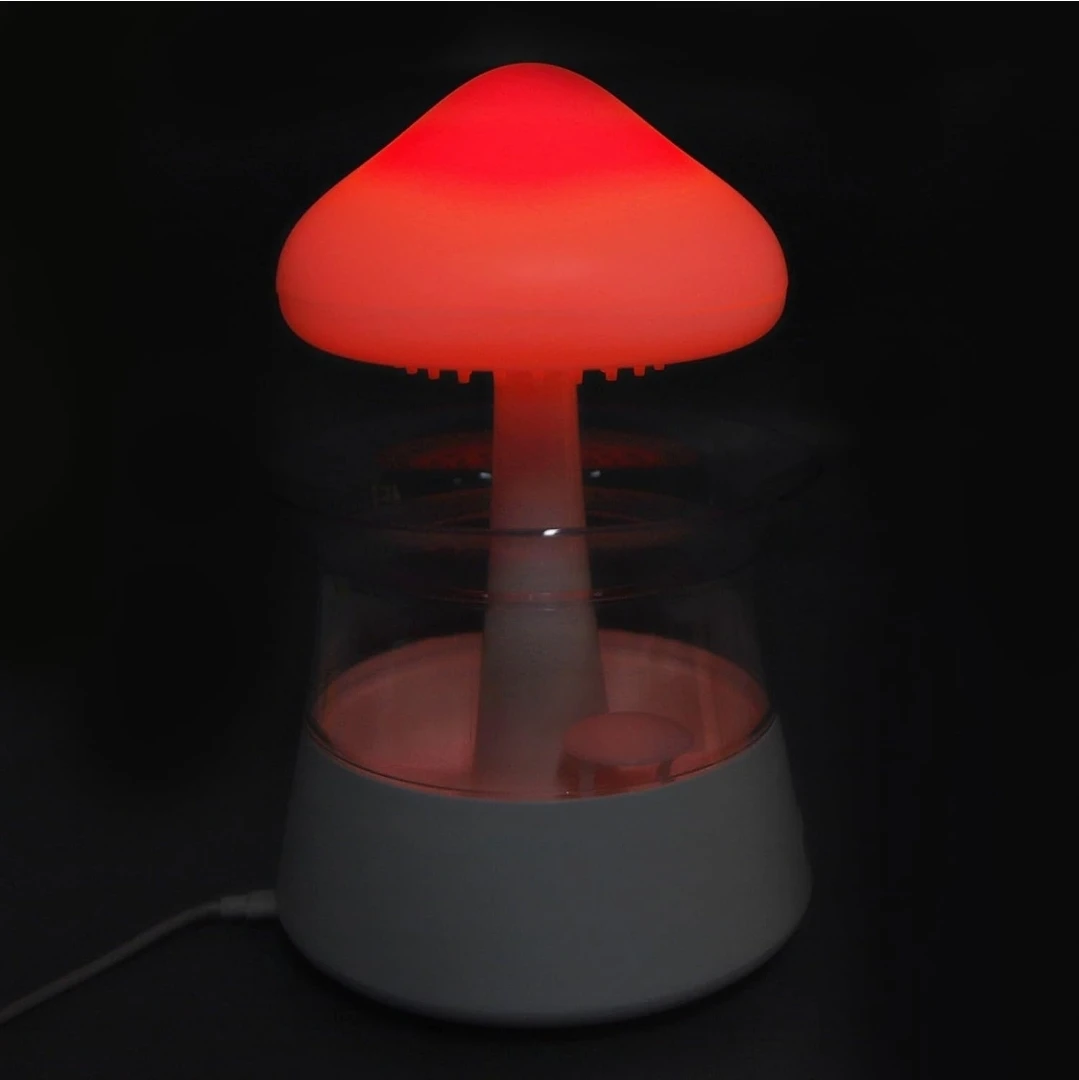 This is a Rain Cloud Humidifier Water Drip Mushroom Aroma Diffuser with 7 Colors! It creates a relaxing and comfortable atmosphere, great for sleeping. It has a spill resistant design and three switch buttons. It features customizable mood lighting and eco-friendly lights.