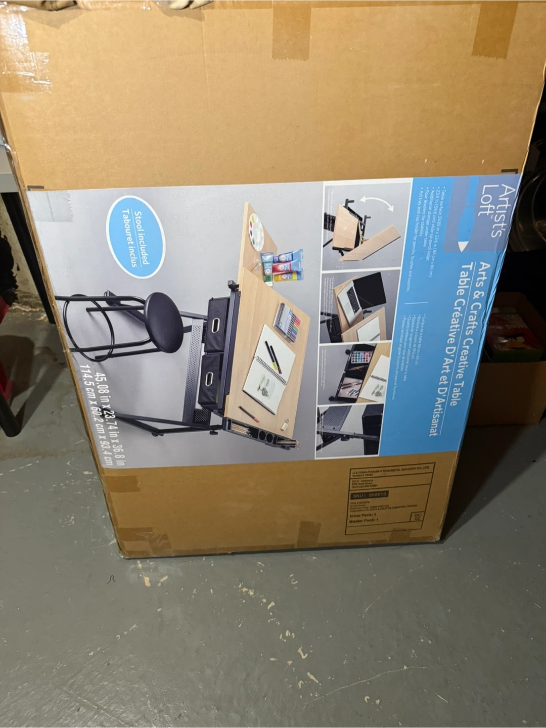 I'm selling a new Artist’s Loft Arts & Crafts Creative Table with a stool included. This versatile table features a surface area of 45.08 inches by 23.74 inches (114.5 cm x 60.2 cm) and stands 36.8 inches (93.4 cm) tall, making it perfect for various art projects. The table is brand new, still in its original packaging, and ready for assembly. Unleash your inner artist with this fantastic addition to your creative space!