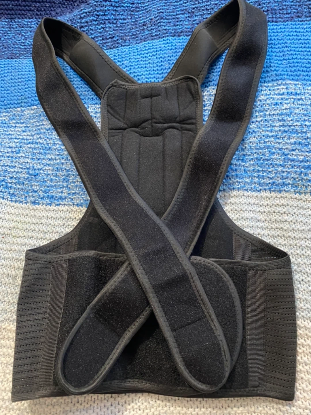 This posture corrector back brace is in great condition and ready to help you improve your posture! It's black and features a comfortable, breathable mesh design. It's designed to support your back and shoulders, helping to align your spine and reduce slouching. Perfect for wearing at home, at work, or during workouts!