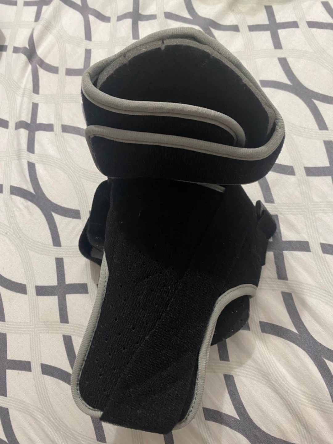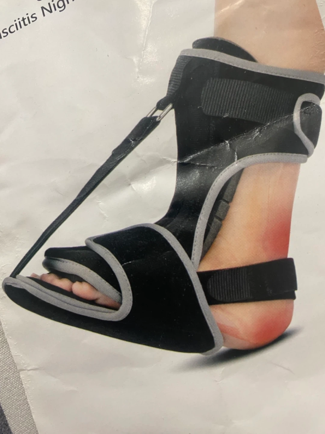 This is a Plantar Fasciitis Night Splint Foot Drop Brace in black and grey. It's designed to help with plantar fasciitis and foot drop. It appears to be in good condition and ready to provide support and relief!