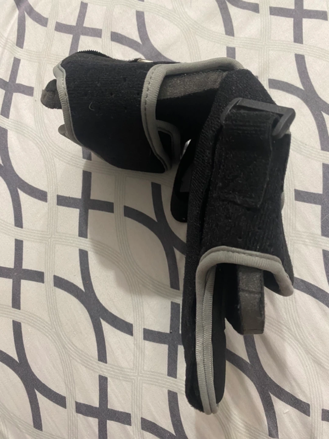 This is a Plantar Fasciitis Night Splint Foot Drop Brace in black and grey. It's designed to help with plantar fasciitis and foot drop. It appears to be in good condition and ready to provide support and relief!