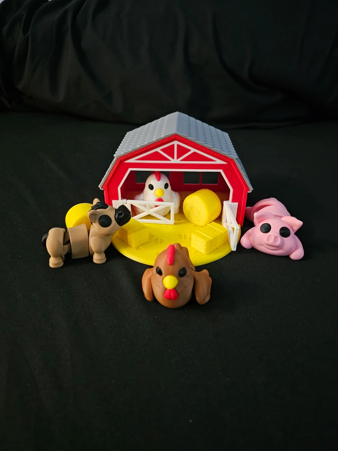 Includes 1 farm, gate, 1 square hay bail, 1 round hay bail, and 1 animal