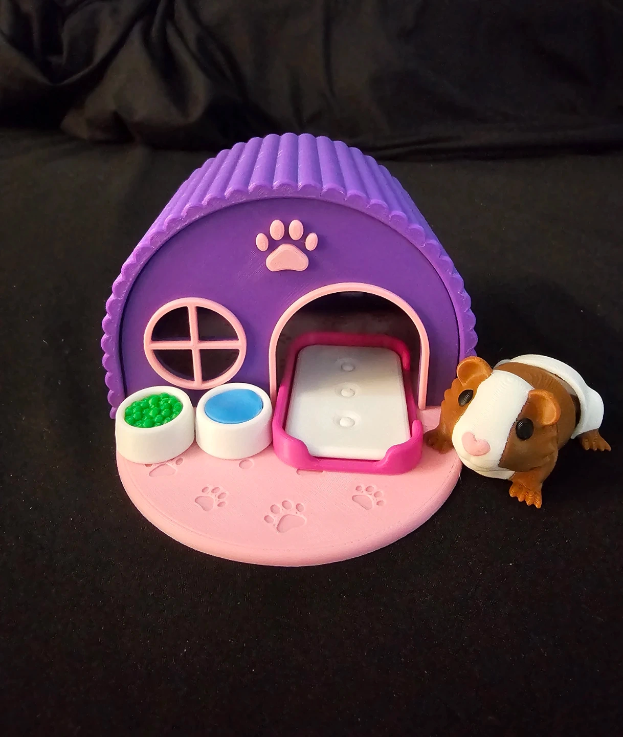 Includes 1 house, 1 pet bed, 1 water dish with water, 1 food dish with food, and 1 pet of your choice