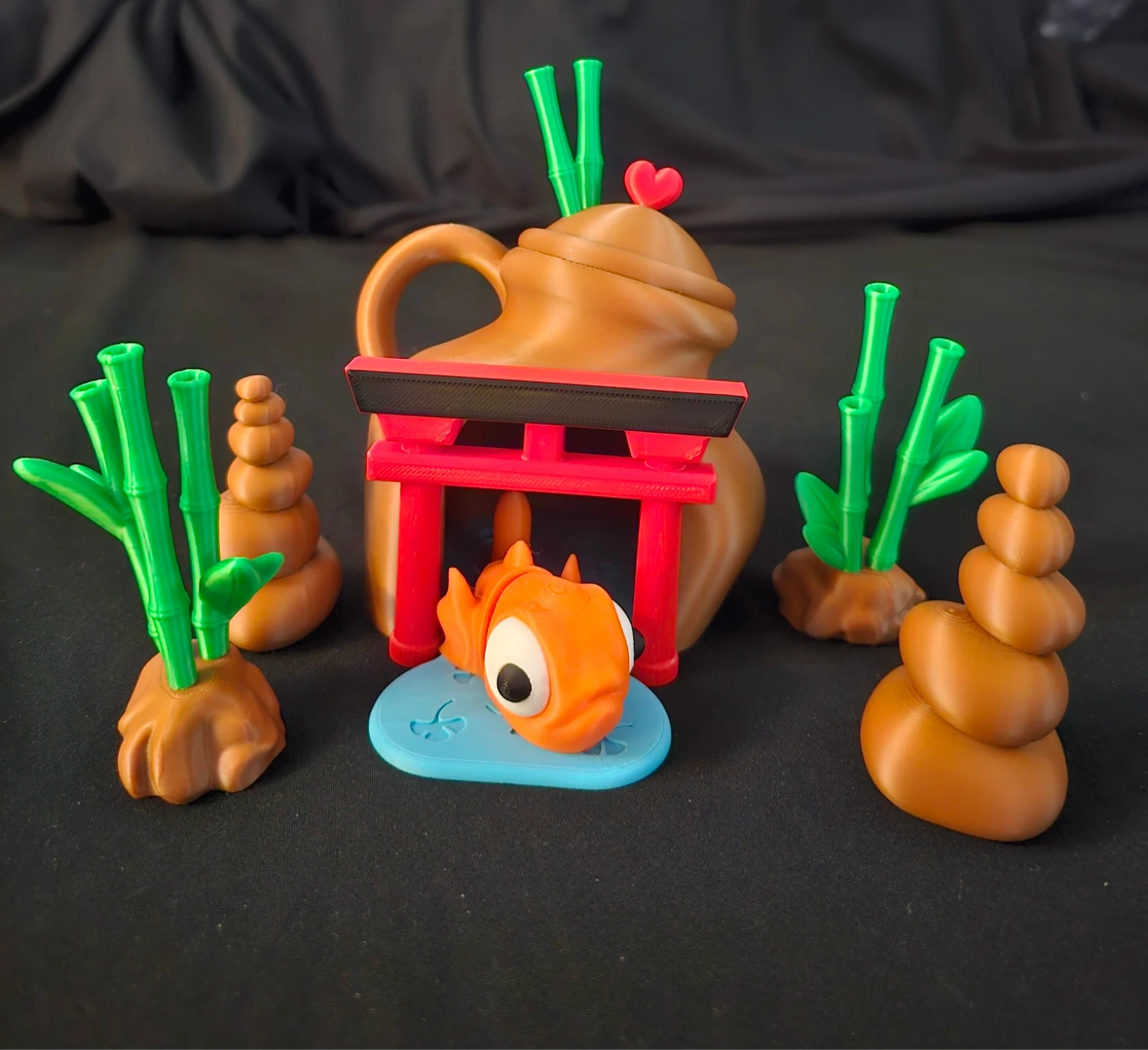 Includes 1 house, 1 rock, 1 rock with bamboo, and 1 pet of your choice
