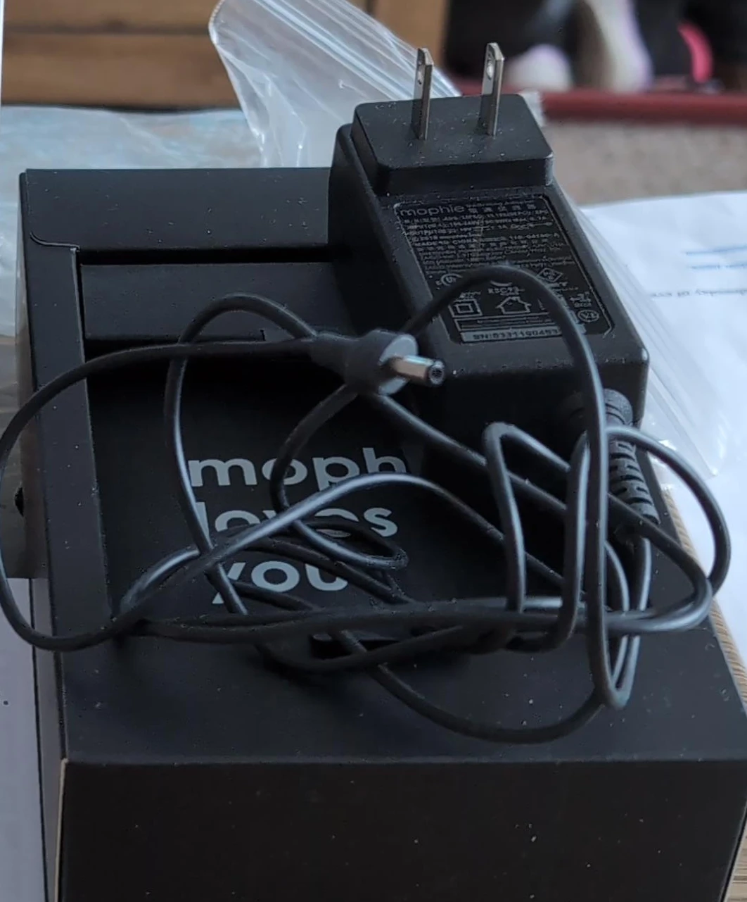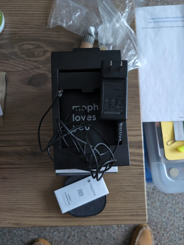 Selling a Mophie wireless charging pad! It's designed for Qi compliance and compatible with Apple, Samsung, and LG devices. It features fast wireless charging optimized for Apple, Samsung, and Google phones. The pad has a premium Ultrasuede finish and a non-slip rubberized coating to stay powerful! Wall adapter included