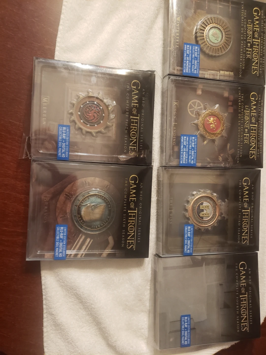 Selling a complete set of Game of Thrones Blu-ray Limited Edition Steelbooks! Each season includes a collectible sigil magnet and digital HD copy. Seasons 1 2, 3, 4, 5, and 6 are included in this collection