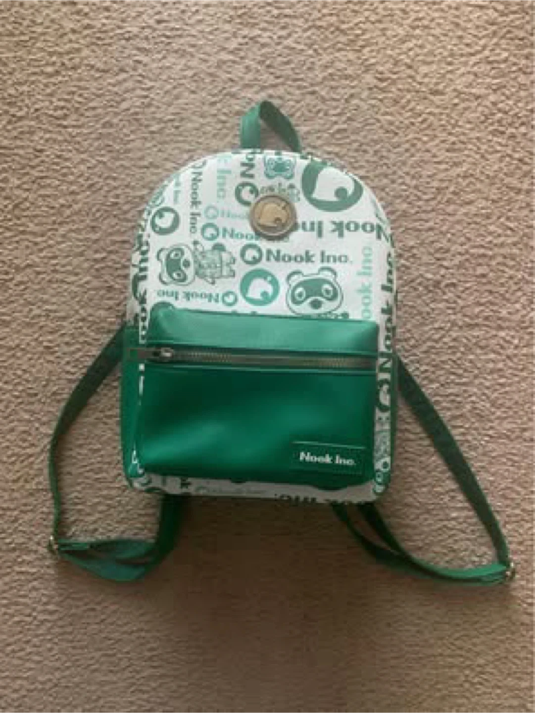 Selling a cute Animal Crossing Nook Inc. mini backpack! It's in great condition. The bag features the Nook Inc. logo and leaf design. Perfect for any Animal Crossing fan!