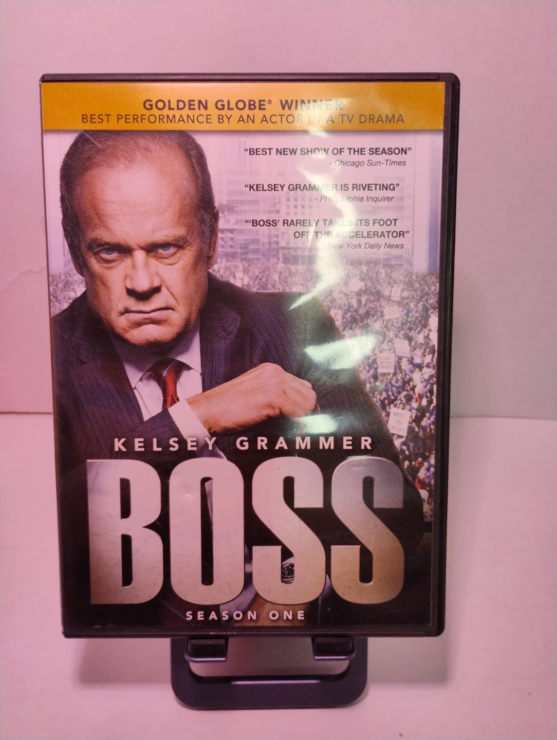 Selling the DVD of Boss: Season One starring Kelsey Grammer. It's a Golden Globe winner for Best Performance by an Actor in a TV Drama.