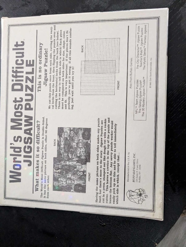 Test your puzzling skills with this new Buffalo Games 'World's Most Difficult Jigsaw Puzzle - Cows' featuring 529 double-sided pieces! This unique puzzle is double-sided, showing the same image on both sides, but rotated 90 degrees, making it extra challenging. It is still sealed in the original packaging, ready for you or a gift for someone who likes puzzles! Specifications: