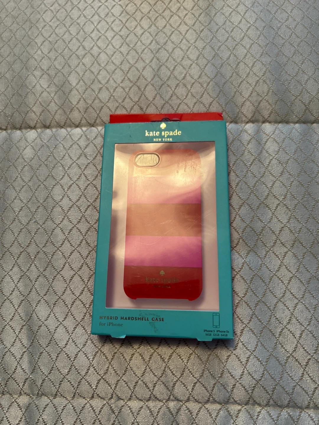 Clear out Selling a Kate Spade hybrid hardshell case for iPhone 5/5s. It's still in its original box. The case features a vibrant color block design in shades of red and pink. Perfect for adding a touch of style to your phone!