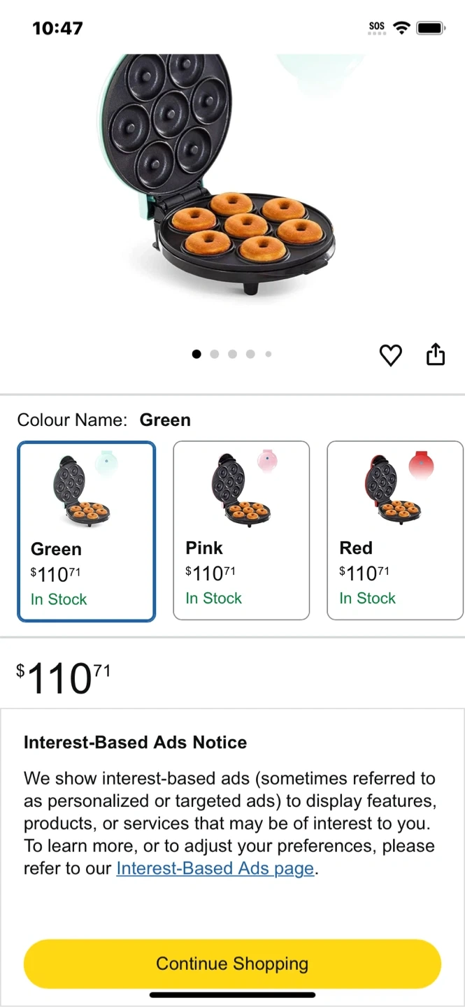 It makes 7 mini donuts at a time and has a nonstick surface.