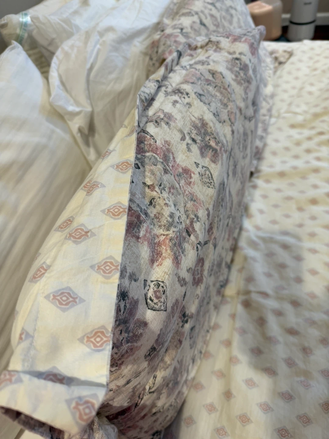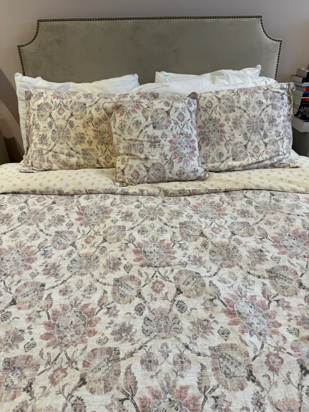 Selling a Tahari comforter with 2x matching shams & throw pillow. The shell is 100% cotton and the filling is 100% polyester.