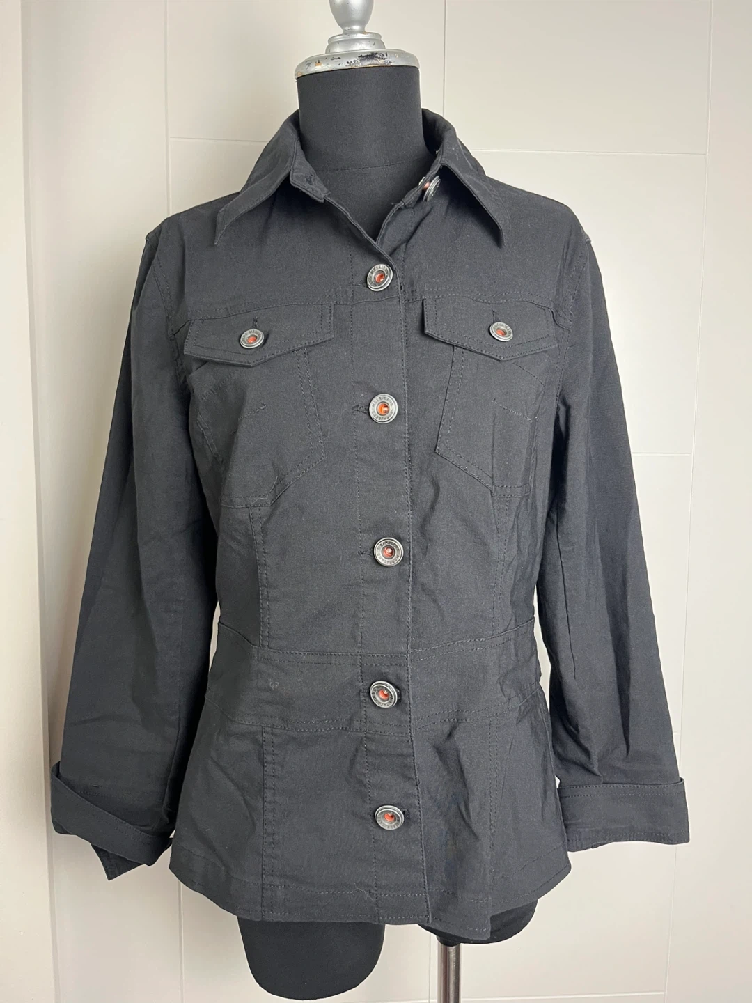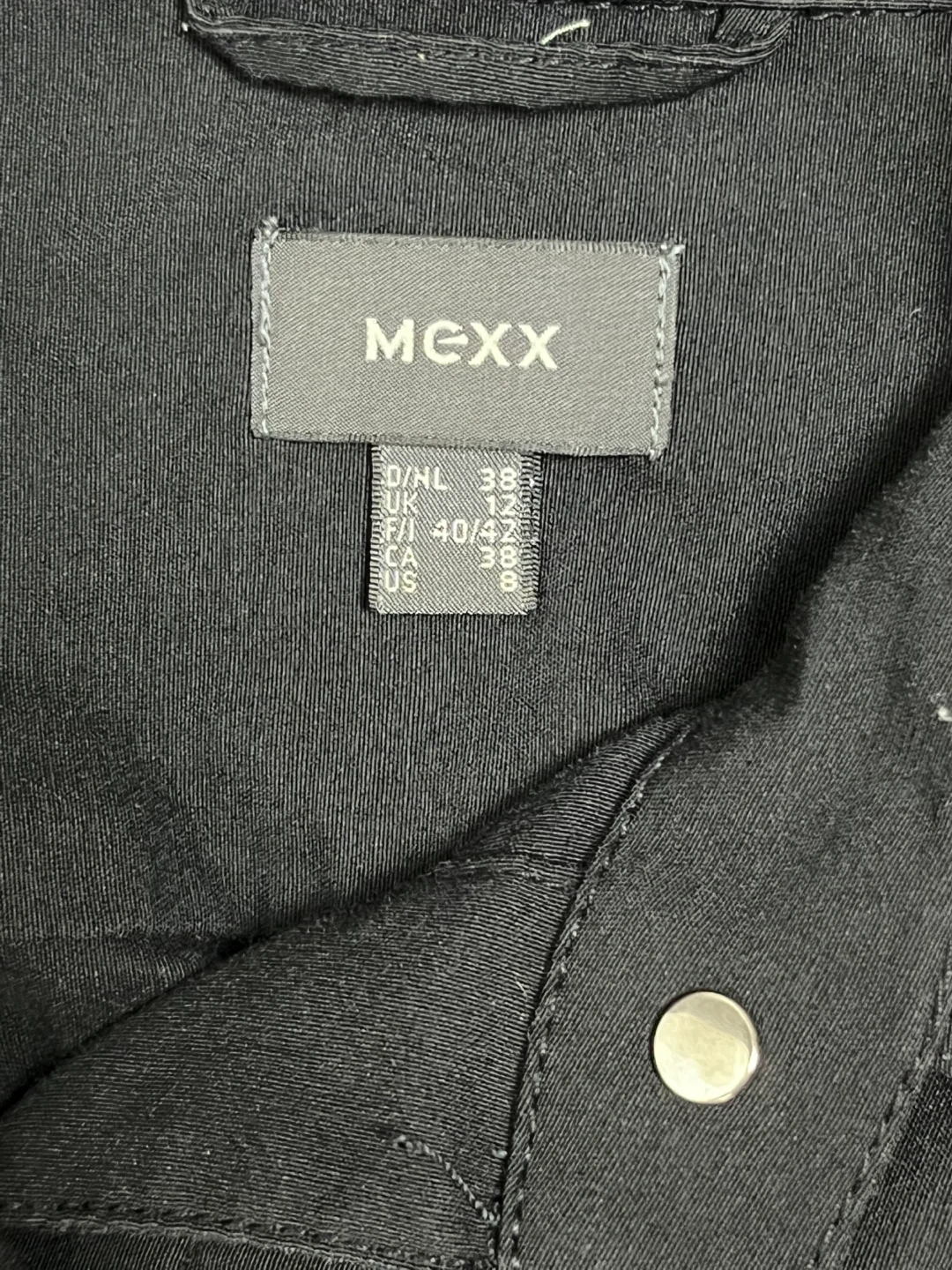 Here's a stylish black jacket from Mexx! It's a size M. The jacket features a button-up design and is in great condition. Perfect for adding a touch of sophistication to your wardrobe.