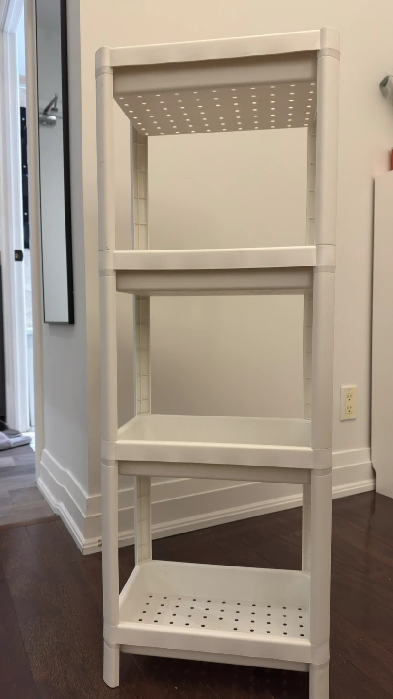 Selling a white shelving unit from IKEA! It's in great shape and perfect for adding some extra storage to any room. It's lightweight and easy to move around, making it super versatile for different spaces.