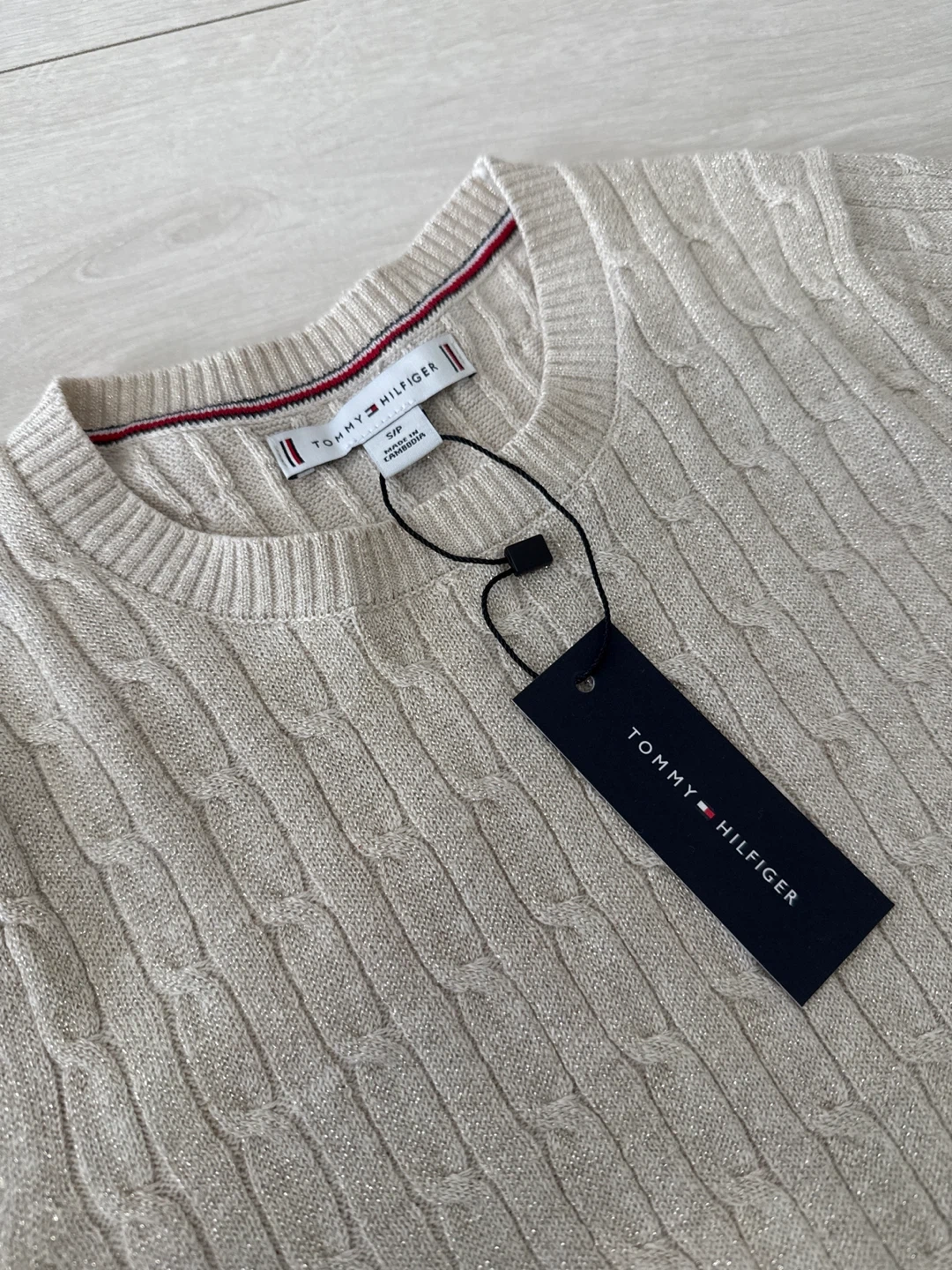 Tommy Hilfiger Short-Sleeve Cable Knit Shimmer Sweater with a price tag!