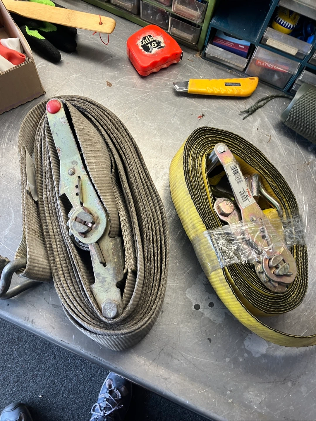 Selling some ratchet straps! They measure 2" x 27" and have a 10,000 lb maximum load capacity. Great for securing cargo
