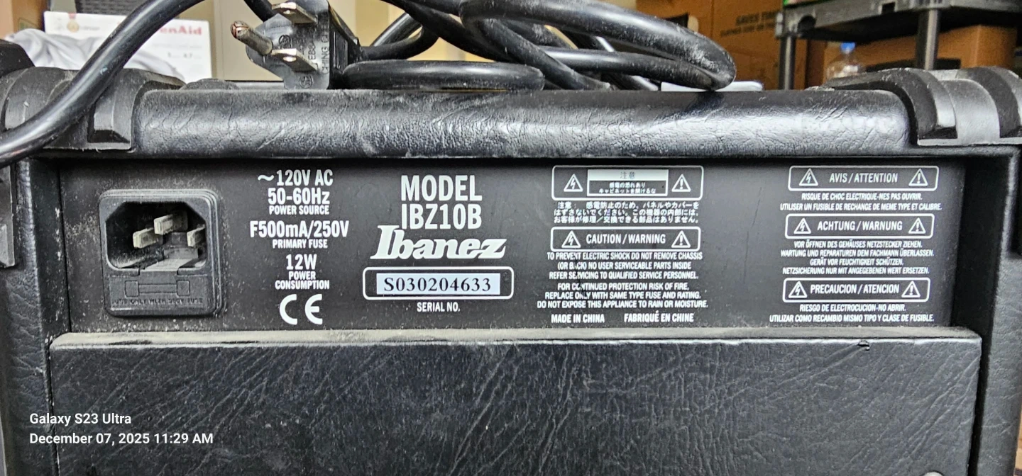 Selling an Ibanez IBZ10B bass amplifier! It's in used condition, but still works great. This amp is perfect for practicing at home or small jam sessions. It has controls for input, volume, treble, bass, and presence, as well as a headphone jack for quiet practice