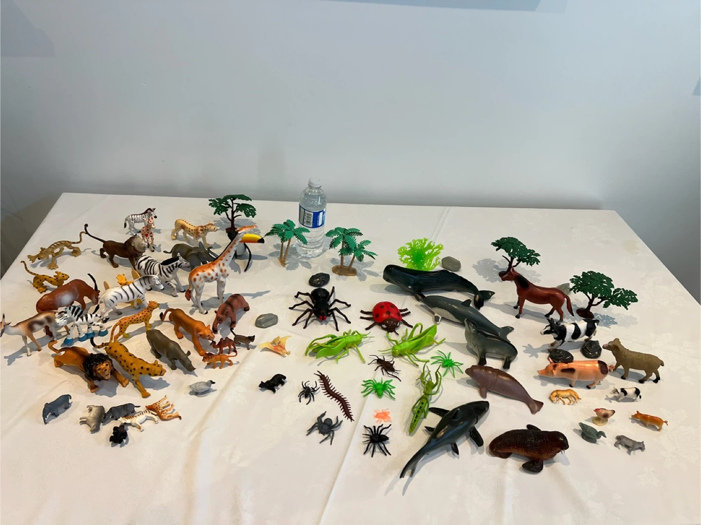 Selling a collection of assorted animal and insect figures! Great for kids' playtime or educational purposes. Includes a variety of animals such as lions, zebras, giraffes, horses, and sea creatures, as well as insects like spiders, ladybugs, and grasshoppers