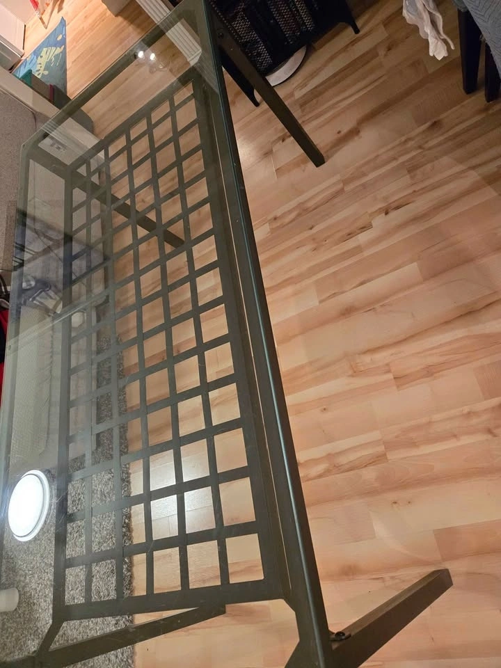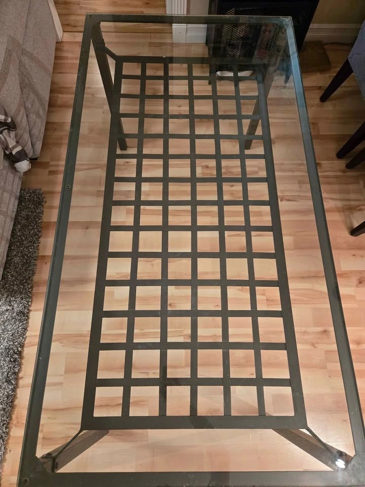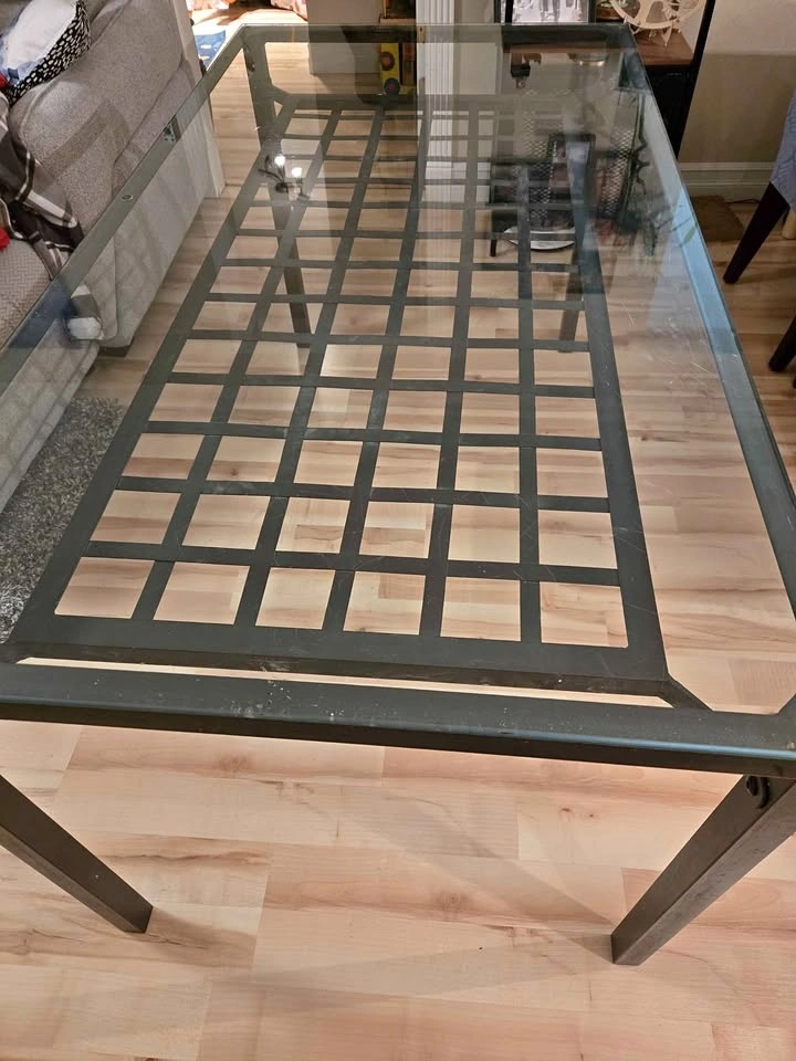 This dining table can be used indoors or outdoors - it's been purely indoors since it was purchased, so it's still in very good shape (and no rusting at all). Glass tabletop has a small scratch and some surface scuffing. Pickup in Tsawwassen, price OBO.