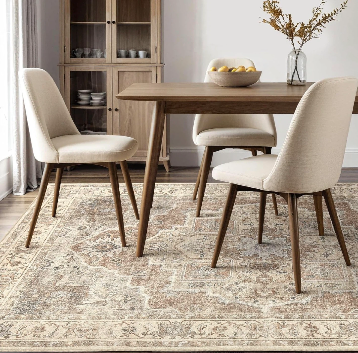 This area rug is perfect for adding a touch of style to any room! It's machine washable, making it easy to keep clean. It would look great in a living room, bedroom, or even a kids' play area