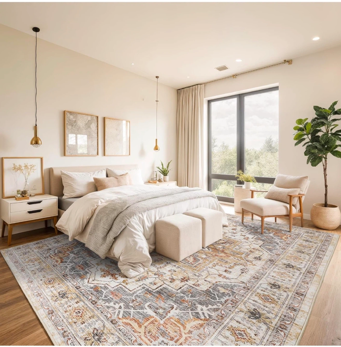 This area rug is machine washable, making it super easy to keep clean! It's designed to be vacuumed on a low setting, and is shown in a variety of home settings. It would look great in any room!