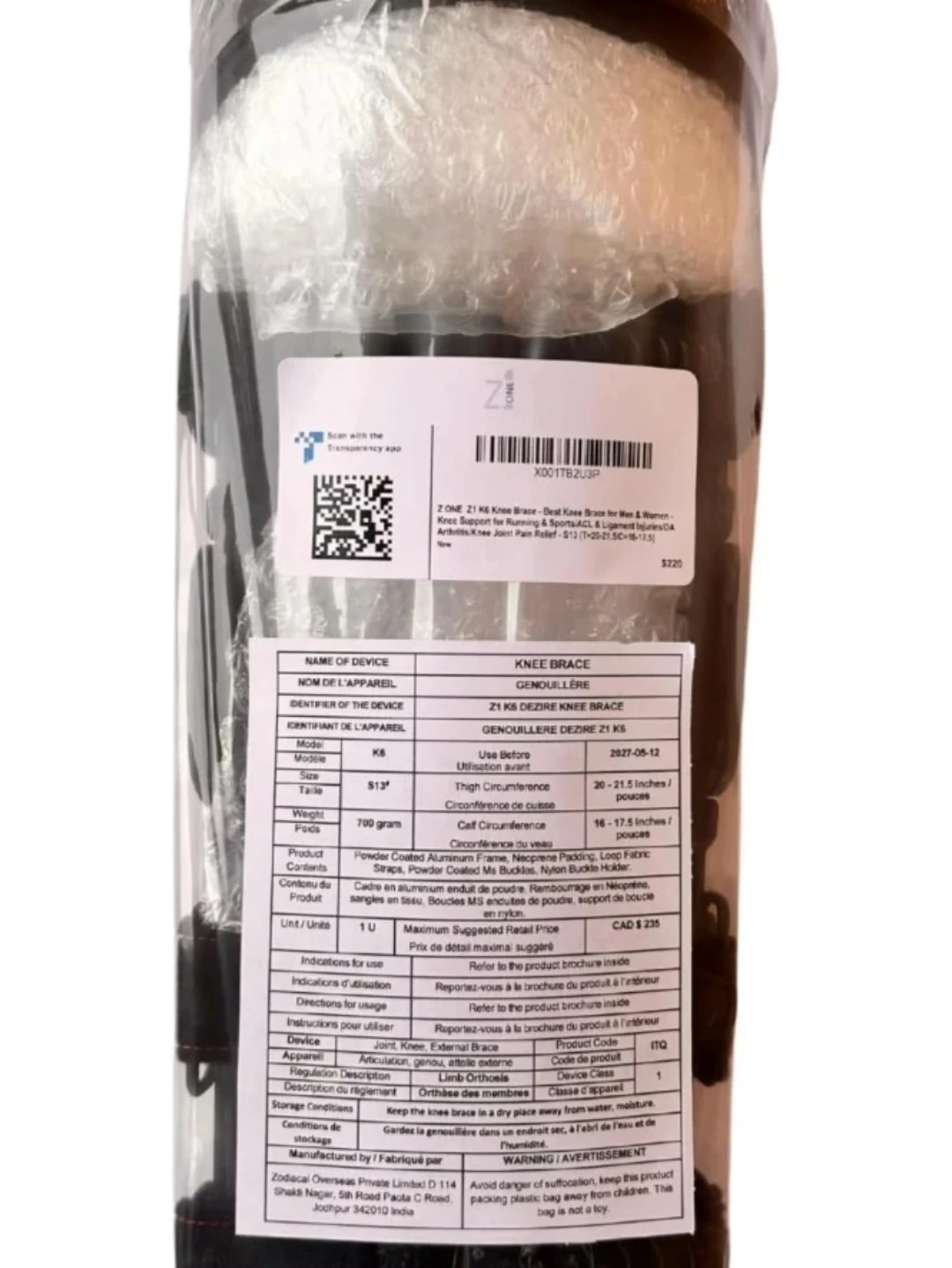 Selling a K6 Dezire Knee Brace in size S13. This knee brace is designed to provide support and stability for various activities, including tennis, gym workouts, running, basketball, hiking, and cycling. It features a high-strength , soft neoprene condyles, and adjustable straps. The brace also has double anti-slip silicone gel-coated padding for comfort and secure fit. Originally retailed for CAD 238