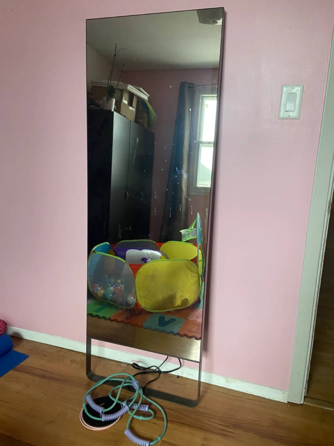 Selling a LuLulemon Studio full-length mirror in good condition. Great for new moms who need a workout at home. No scratches or damage. Extra exercise equipment.