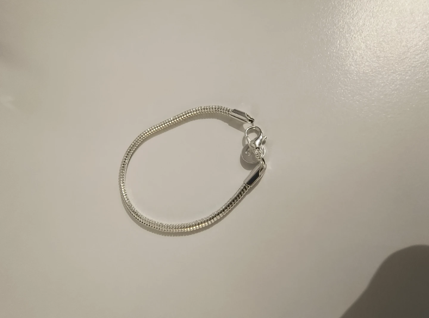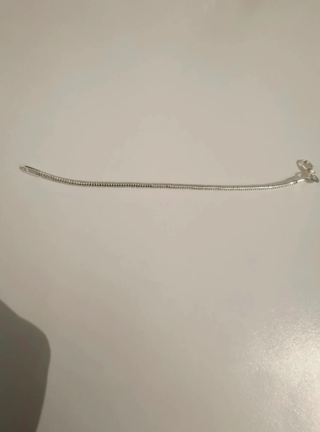 Selling a sterling silver snake chain bracelet. The bracelet is marked with '925', indicating it's made of sterling silver. Perfect for adding a touch of elegance to any outfit!