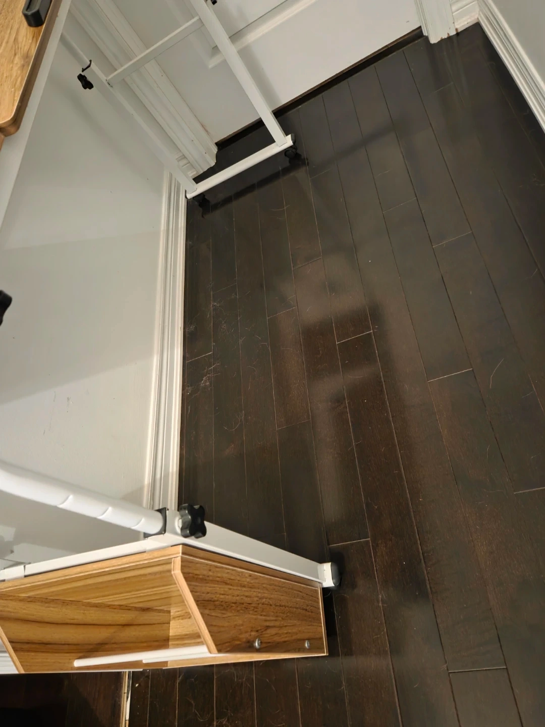 Selling an adjustable laptop desk, perfect for working from home or studying! It features a tilting top, adjustable height, and a handy book storage shelf on the side. The desk has a sturdy metal frame and a wood-grain finish. It's in great condition and ready to use