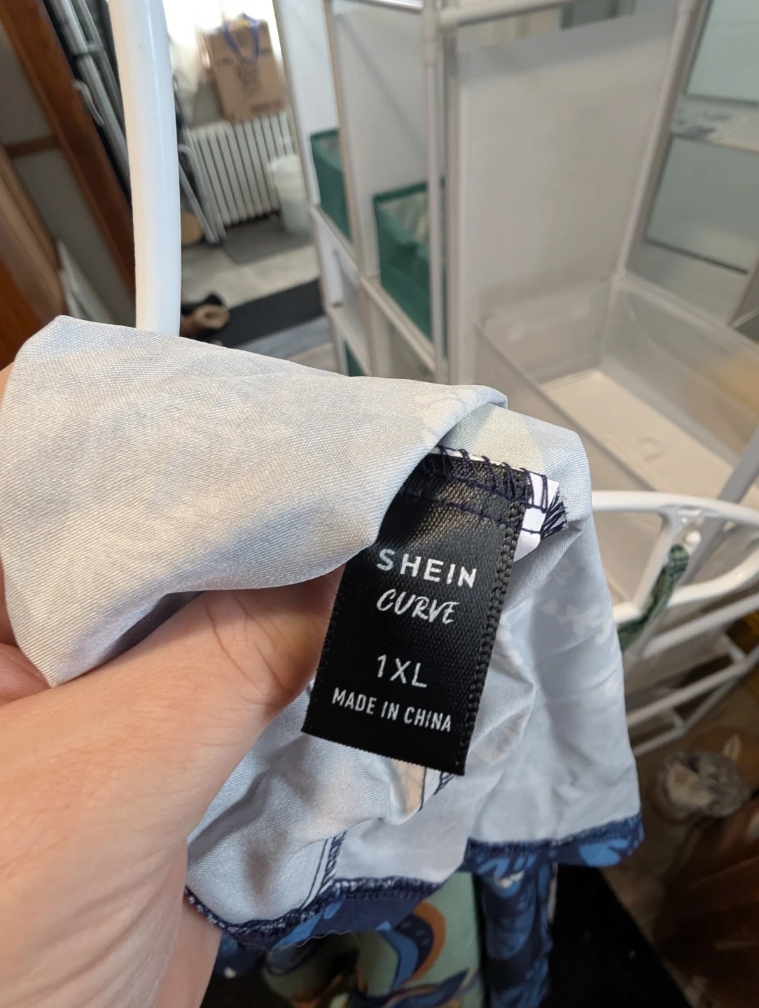 Flowy maxi dress from Shein Curve in size 1XL! The dress features a blue and green pattern. The material is 100% polyester, so it's easy to wash and care for. Perfect for summer days! Or Holidays in the Sun!