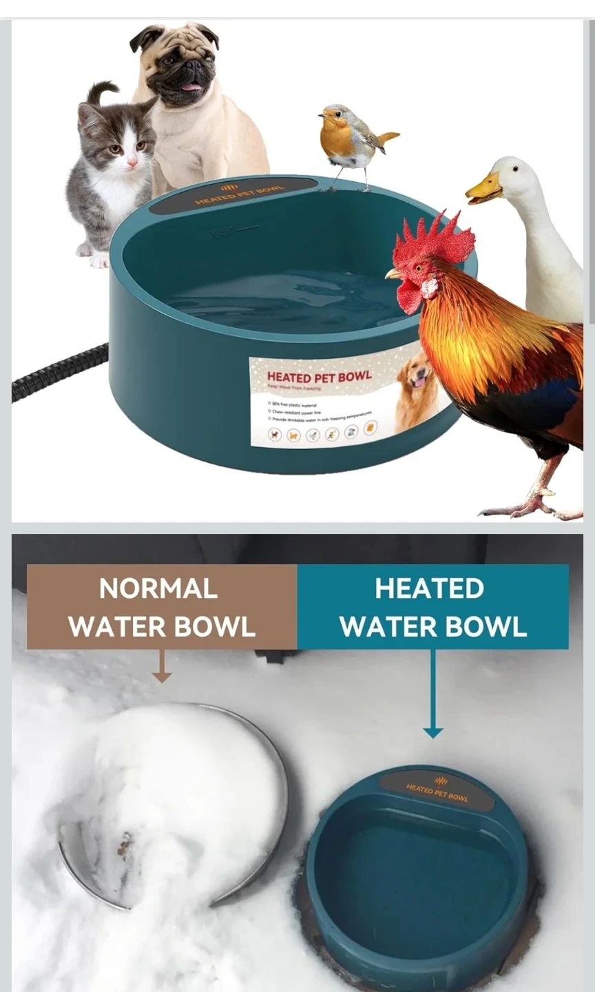 Keep your pet's water from freezing with this new heated pet bowl! It has a 2.2L capacity . The bowl is designed to be ice-free, ensuring your pet always has access to fresh water. The weight is 759g. It comes in the original box.