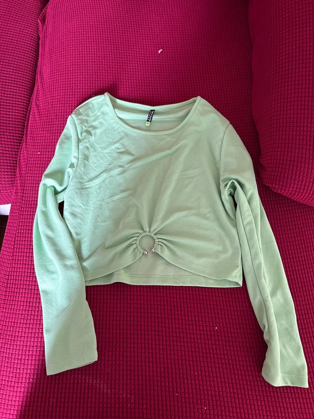 Selling a cute green long sleeve crop top from Shein. It's a size L and in great condition. Perfect for layering or wearing on its own!