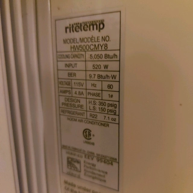 Keep ur cool with two air conditioners: a 5250 BTU Garrison, and a 5050 BTU RiteTemp. The Garrison is digital and has a remote.