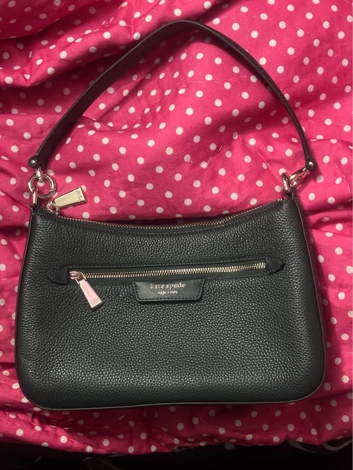 I'm letting go of my Kate Spade dark green bag. It's convertible, so it can be worn as a shoulder bag or crossbody. It's in excellent condition, with an exterior front zip pocket and interior pocket. It comes with its dust bag. Pick up location or public meet up cash only please!