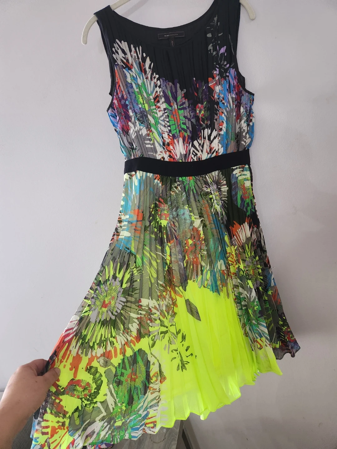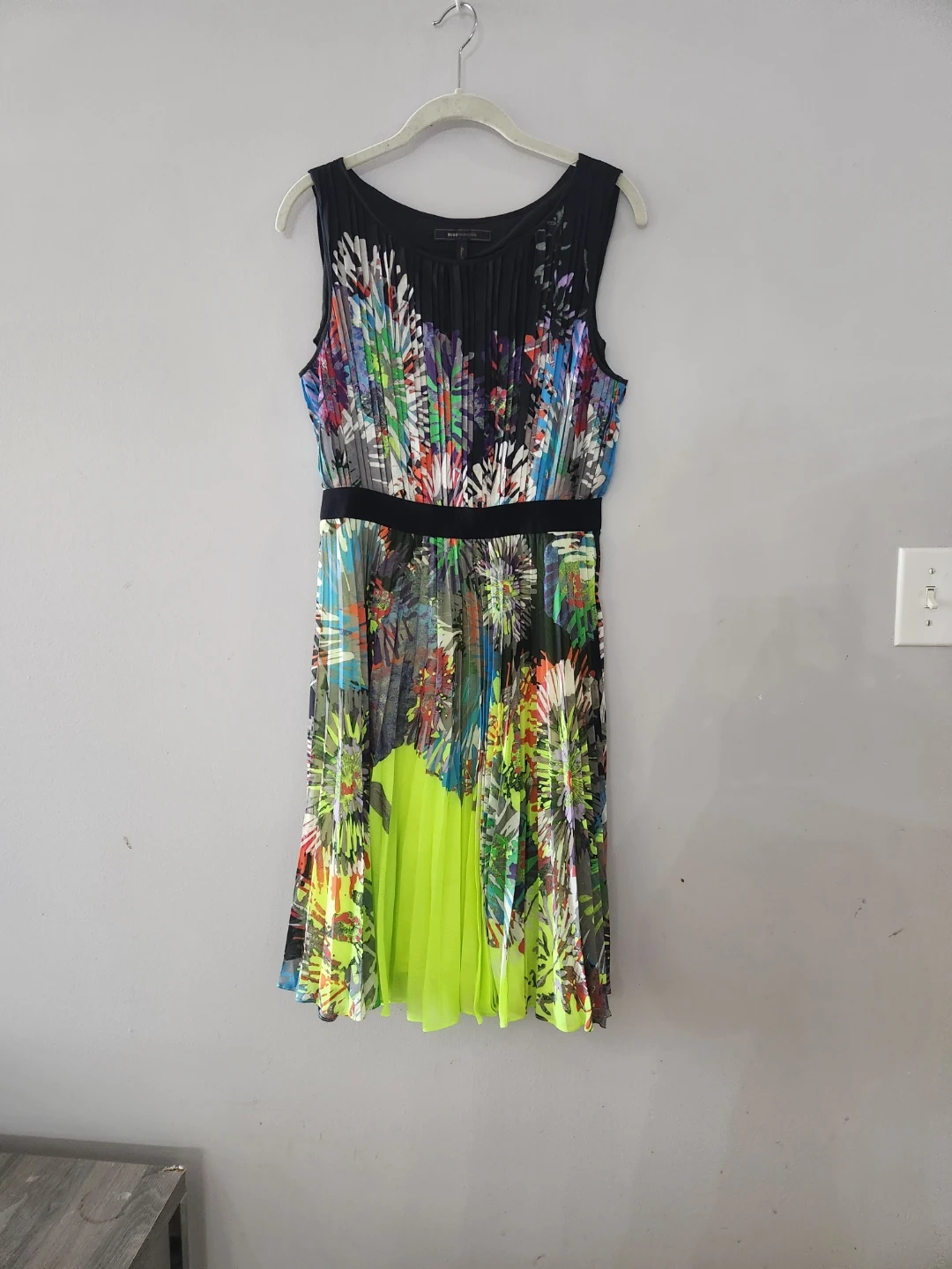 Stunning BCBG Dress with beautiful colour's! Sleeveless and nice waist detail, accordion skirt purchased originally for 450 plus tax