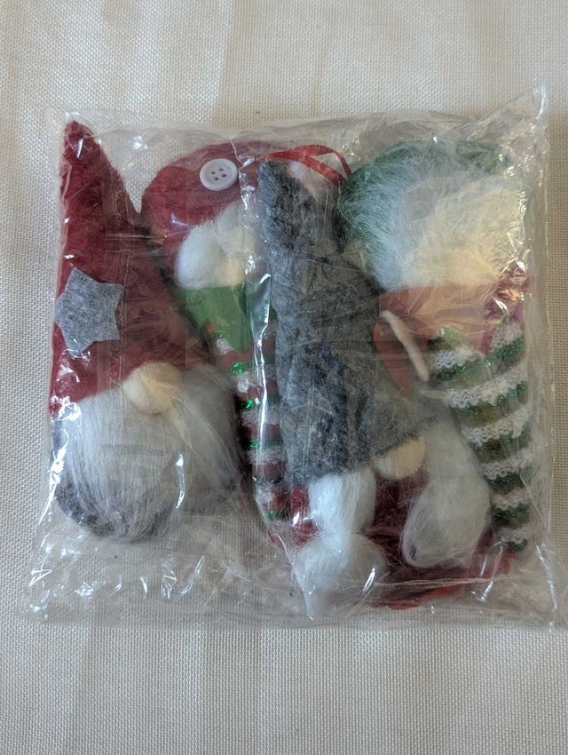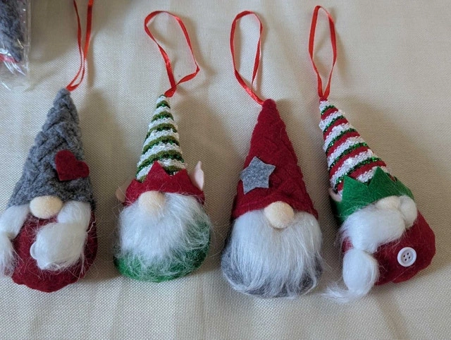 Add a touch of whimsy to your Christmas tree with these adorable Christmas gnome ornaments. These new ornaments come in a variety of colours and styles, perfect for adding a festive touch to your holiday decor. They're just the right size to dangle from your tree or to give as cute little gifts. Packs of four gnomes If the ad is up, they are available!