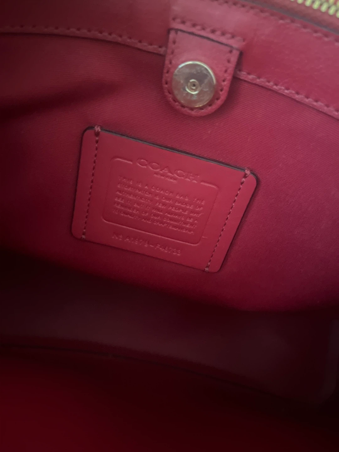 Selling a Coach tote bag in black with a red interior. It's in great condition and ready for a new owner! The bag features the Coach logo and has a classic design. Perfect for everyday use ( it’s in pretty good condition js the straps of the bag are a little ruined.