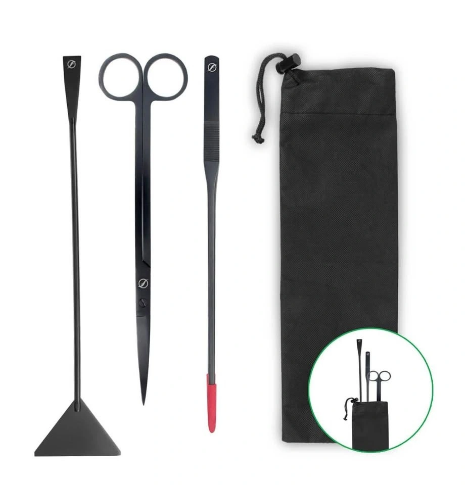 Fluval Plant AquaScaping Tools provides the necessary maintenance tools required to care for live aquatic plants. This kit includes curved scissors, straight forceps, a substrate shovel, and a convenient cloth storage bag.