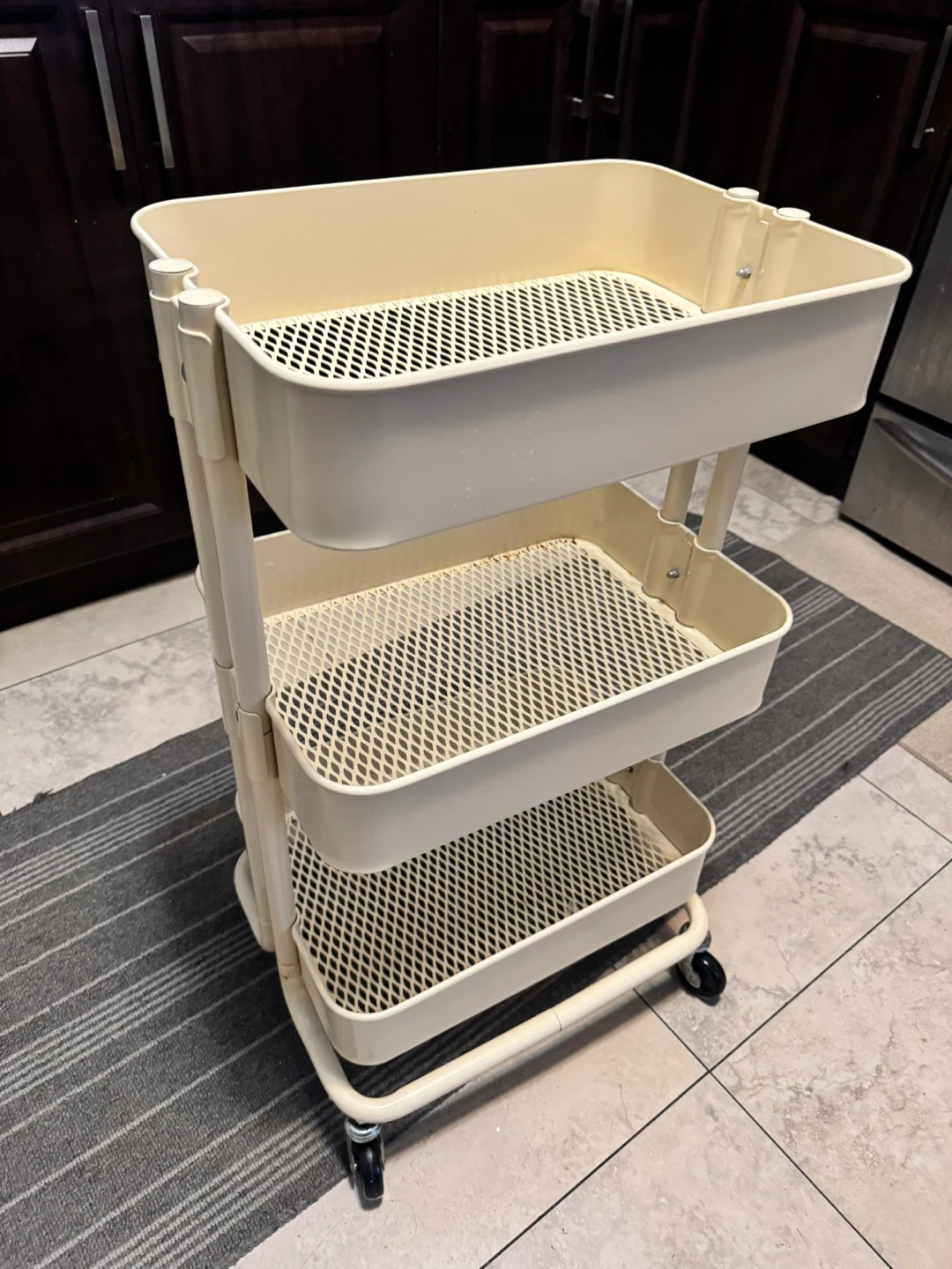 Kitchen Utility Cart in good condition. Comes with adjustable shelves. Pickup at 1110 Atwater Ave, Mississauga. If ad is up, it is available.