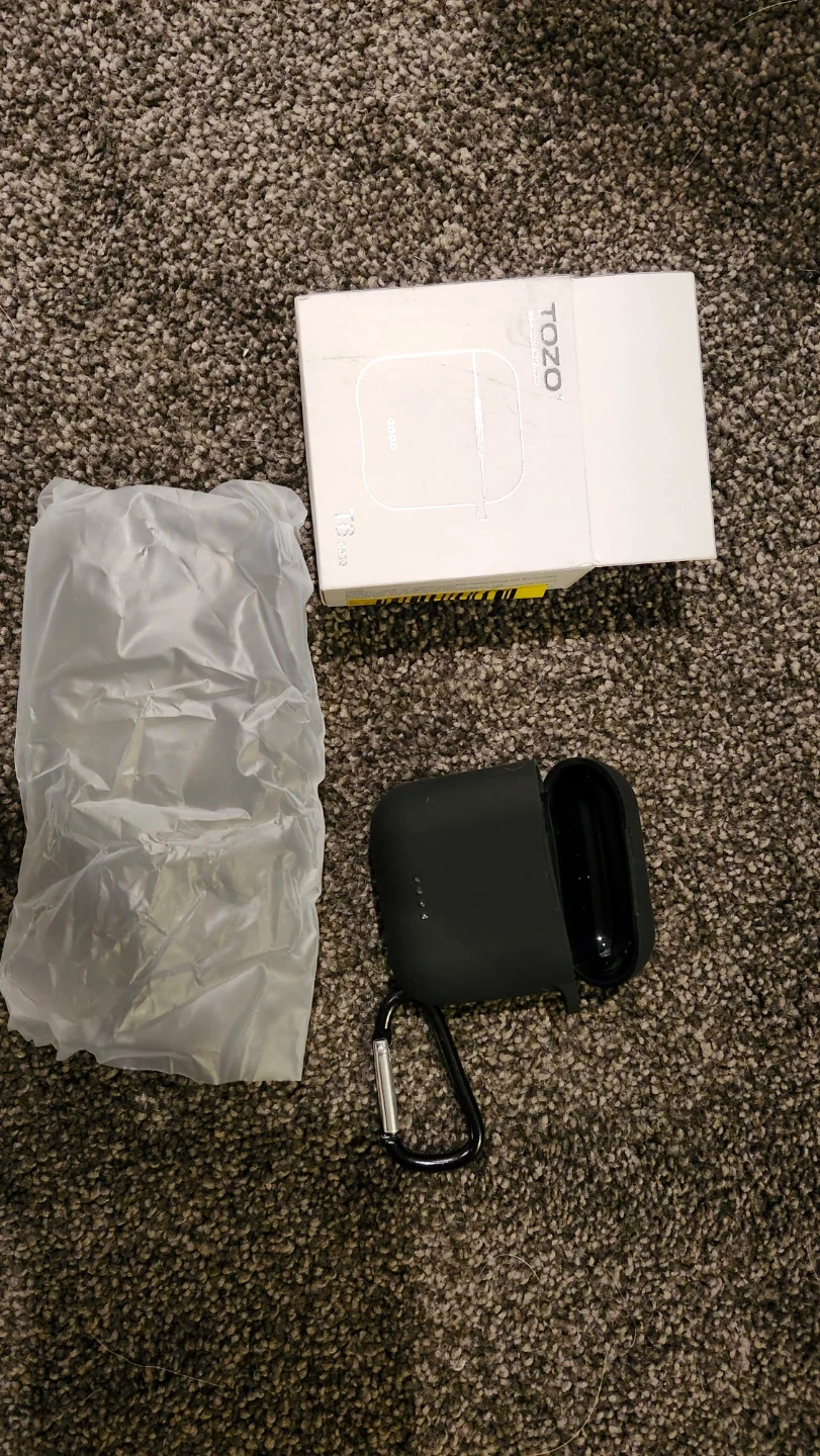 I'm selling a brand new Geekria silicone case cover for TOZO T6 true wireless earbuds! It's a protective carrying case with a keychain hook and a charging port accessible. It comes in black and the original price was $13.95. The box is included!