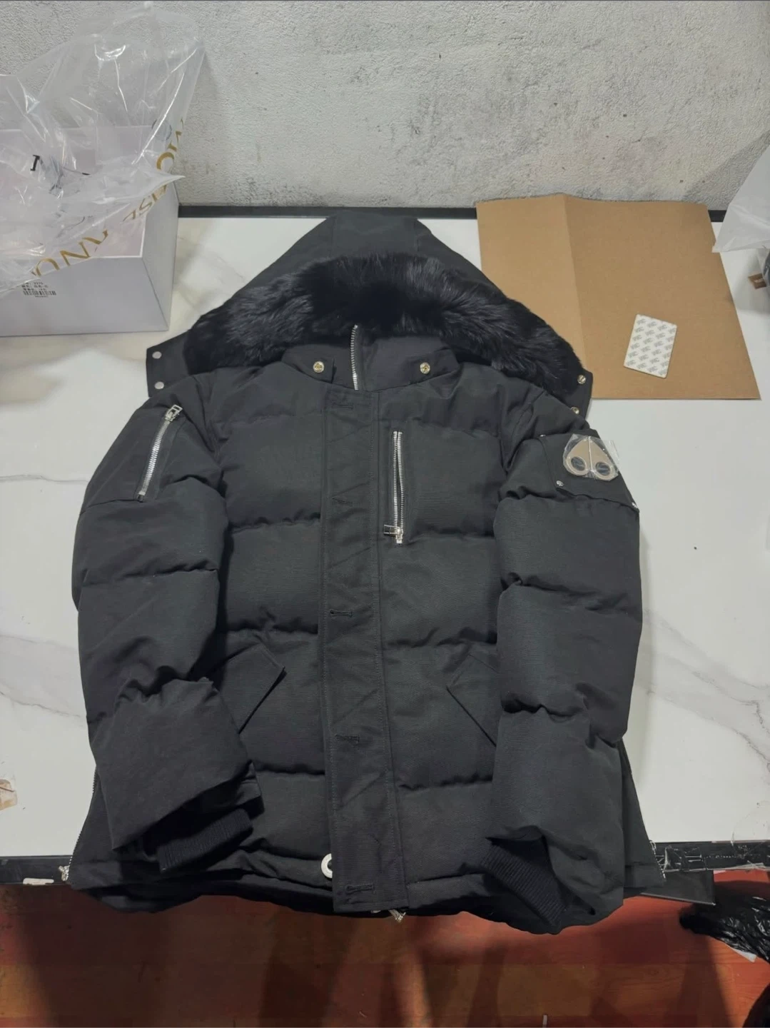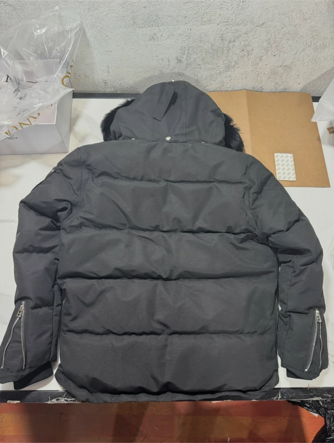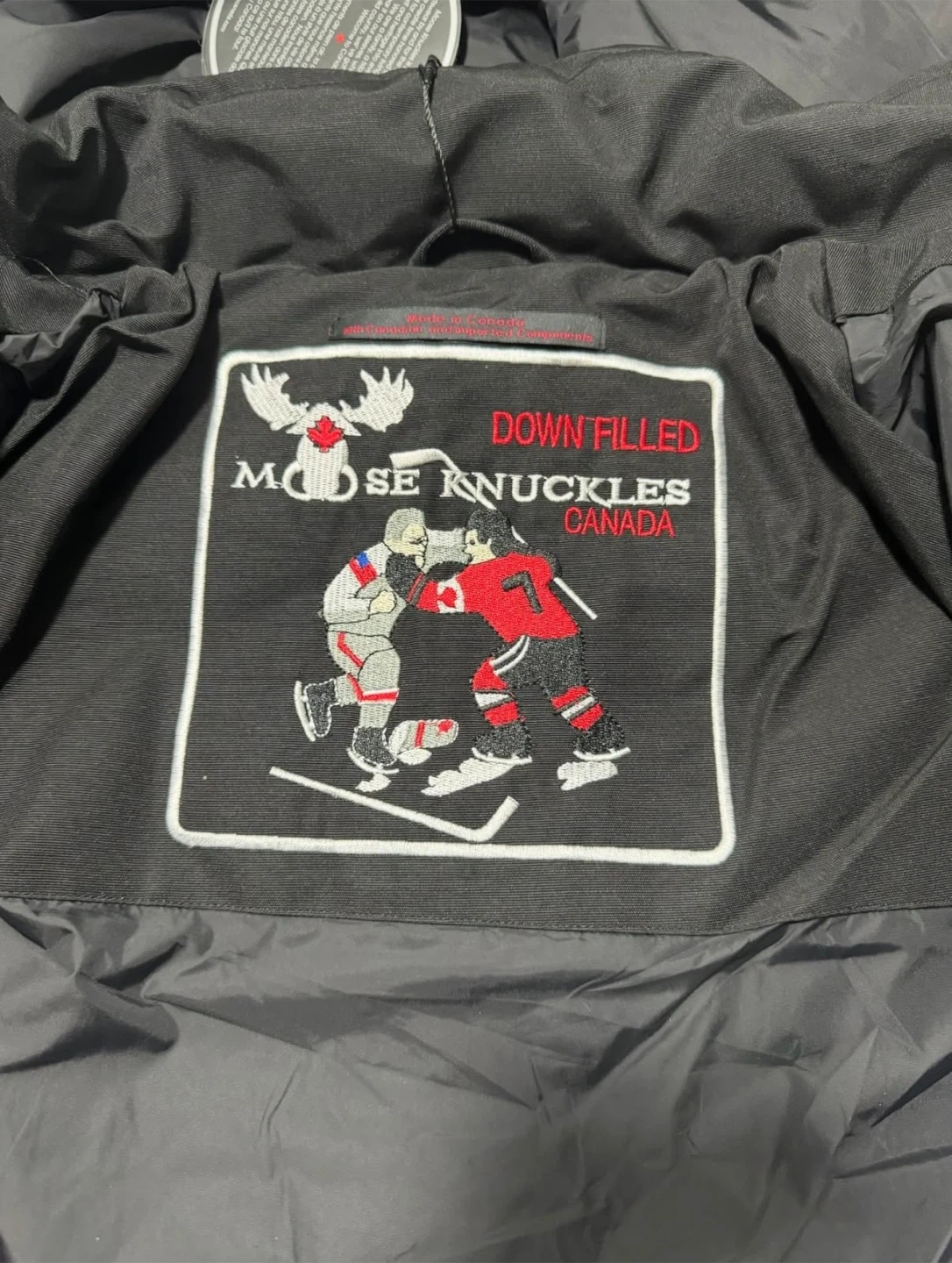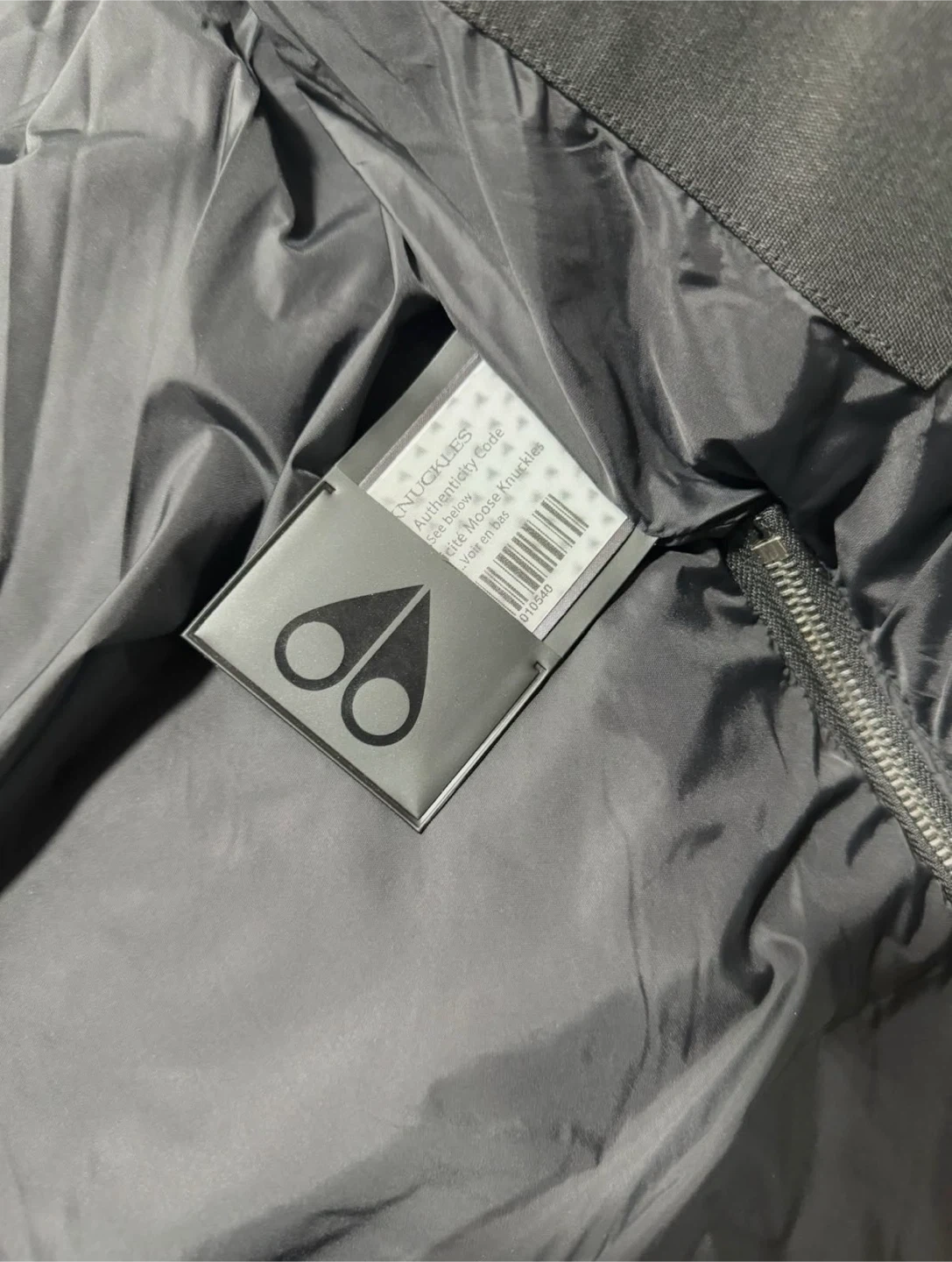 Selling a Moose Knuckles winter jacket. It's a stylish and warm jacket perfect for the Canadian winter! The jacket features the iconic Moose Knuckles logo on the sleeve.