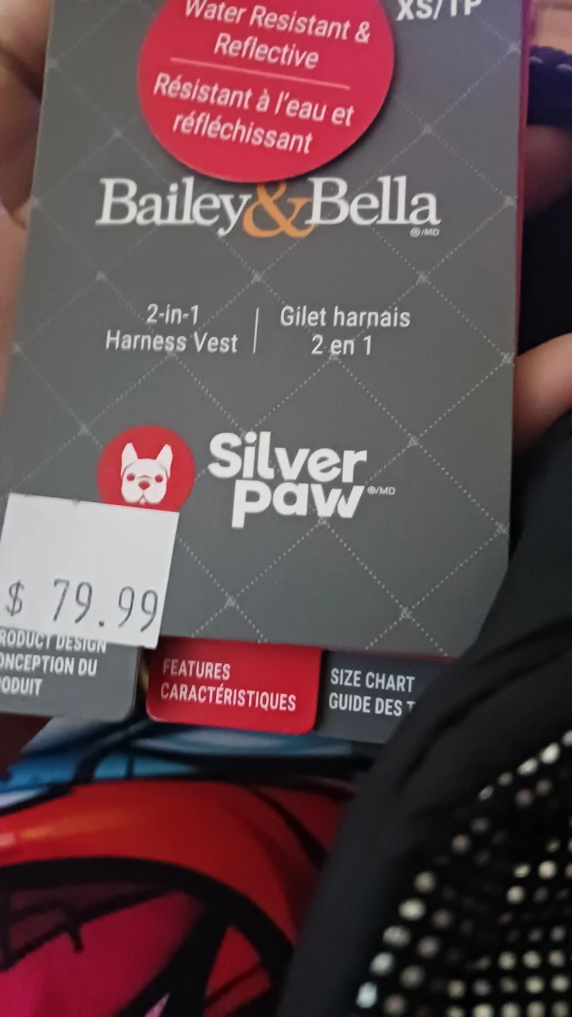 This is a Bailey & Bella Silver Paw 2-in-1 Harness Vest. It's water resistant and reflective, perfect for keeping your furry friend safe and visible. It's a size XS/TP. Originally bought for $79.99!