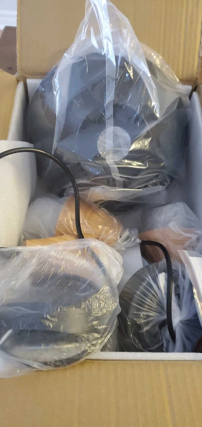 Here's a stylish pendant light with a black cone shade and wooden accent. It would look great over a kitchen island or dining table!