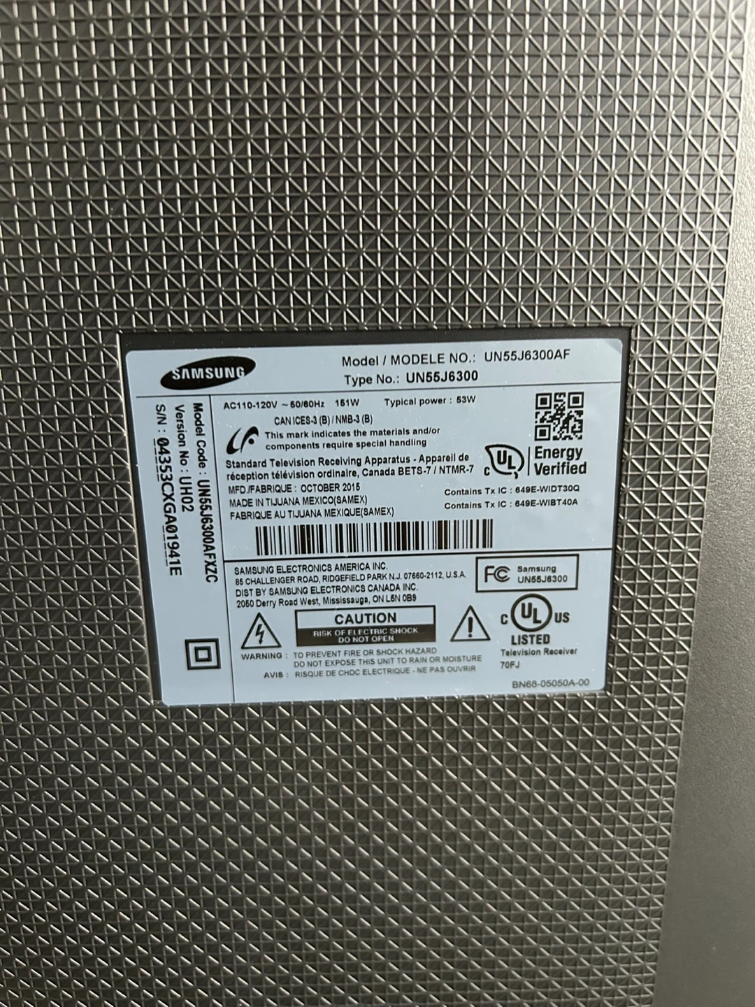 Selling a Samsung 55 inch Smart TV, model number UN55J6300AF. It's in good condition and ready for a new home entertainment setup! It's a great size for any living room or bedroom