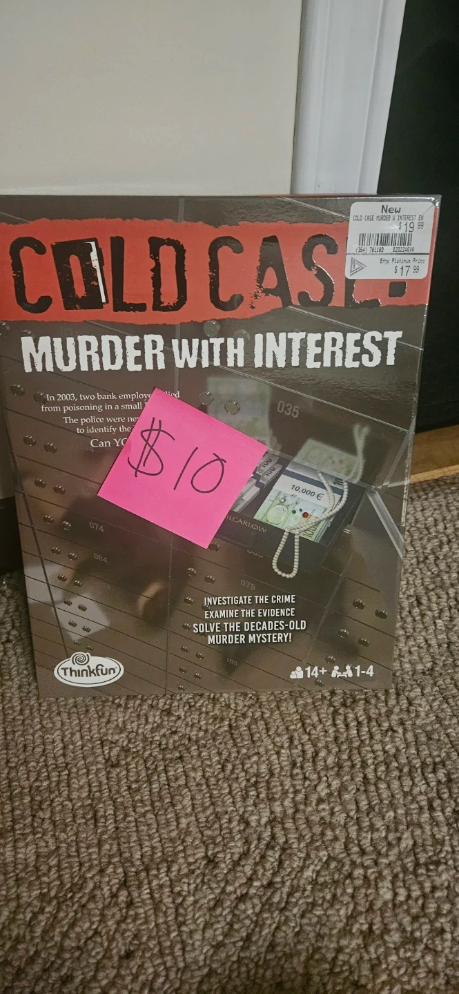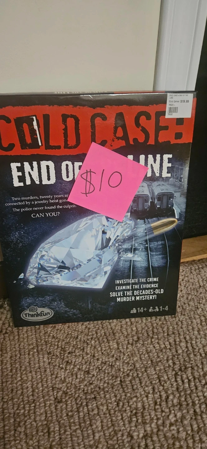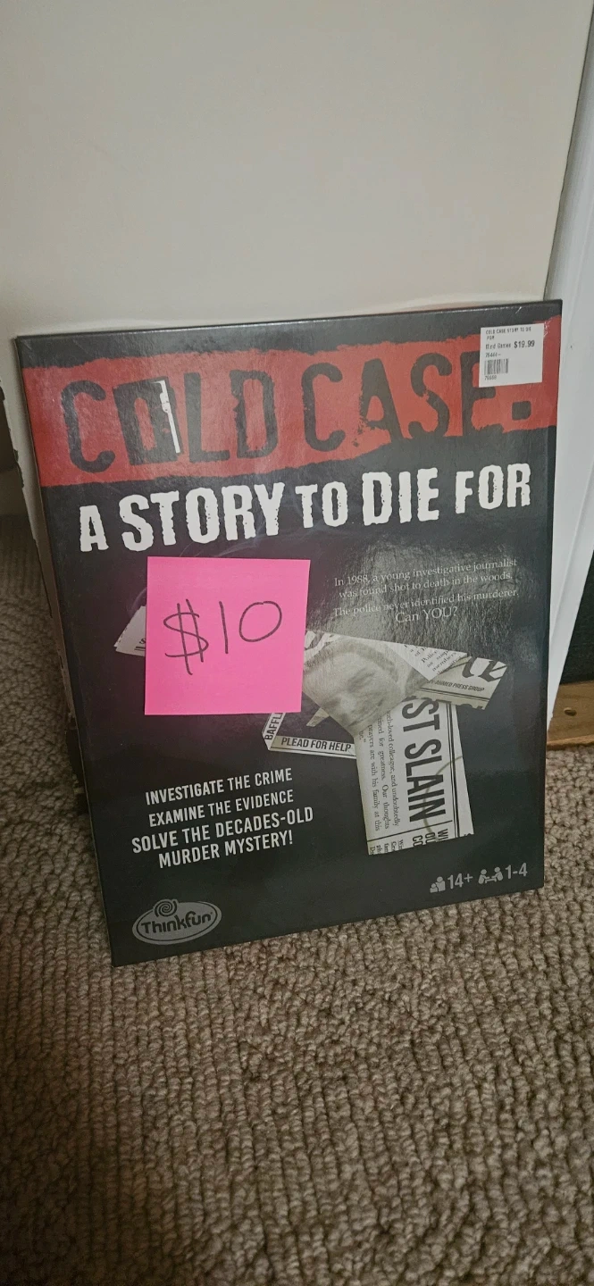 Selling a bundle of ThinkFun Cold Case board games! Includes: A Story to Die For, and End of the Line. Each game lets you investigate the crime, examine the evidence, and solve the decades-old murder mystery! Suitable for ages 14+ and 1-4 players.