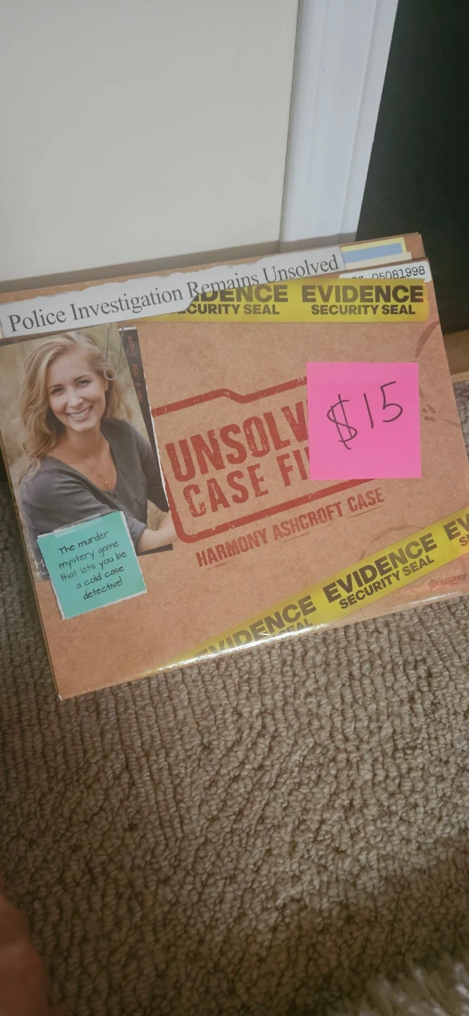 Selling an Unsolved Case Files game, Harmony Ashcroft case. It's a murder mystery game that lets you be a cold case detective! The game is still sealed with evidence security seals.