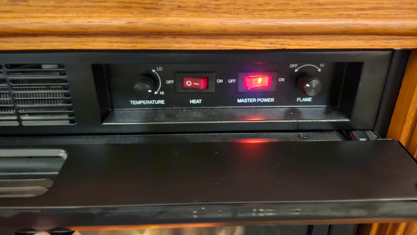 Cozy electric fireplace with a wood mantel. It features adjustable temperature and flame settings so you can create the perfect ambiance. It's in great condition and ready to warm up your space!