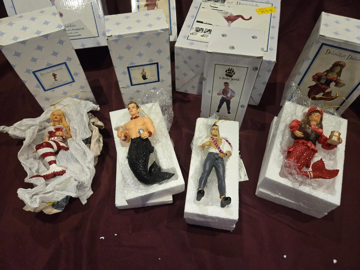Rare Set of 7 December Diamonds Merman/Mermaid Ornaments