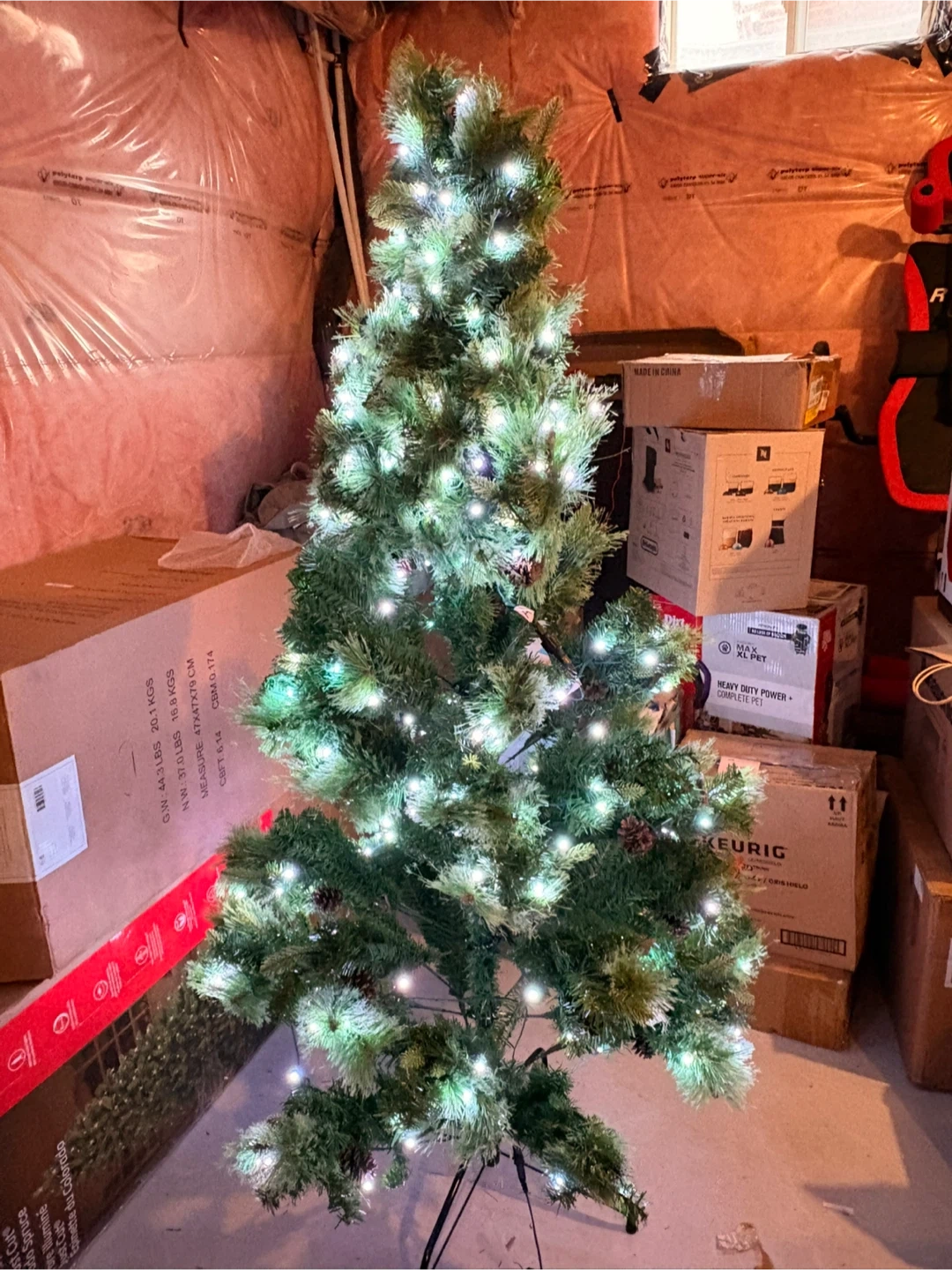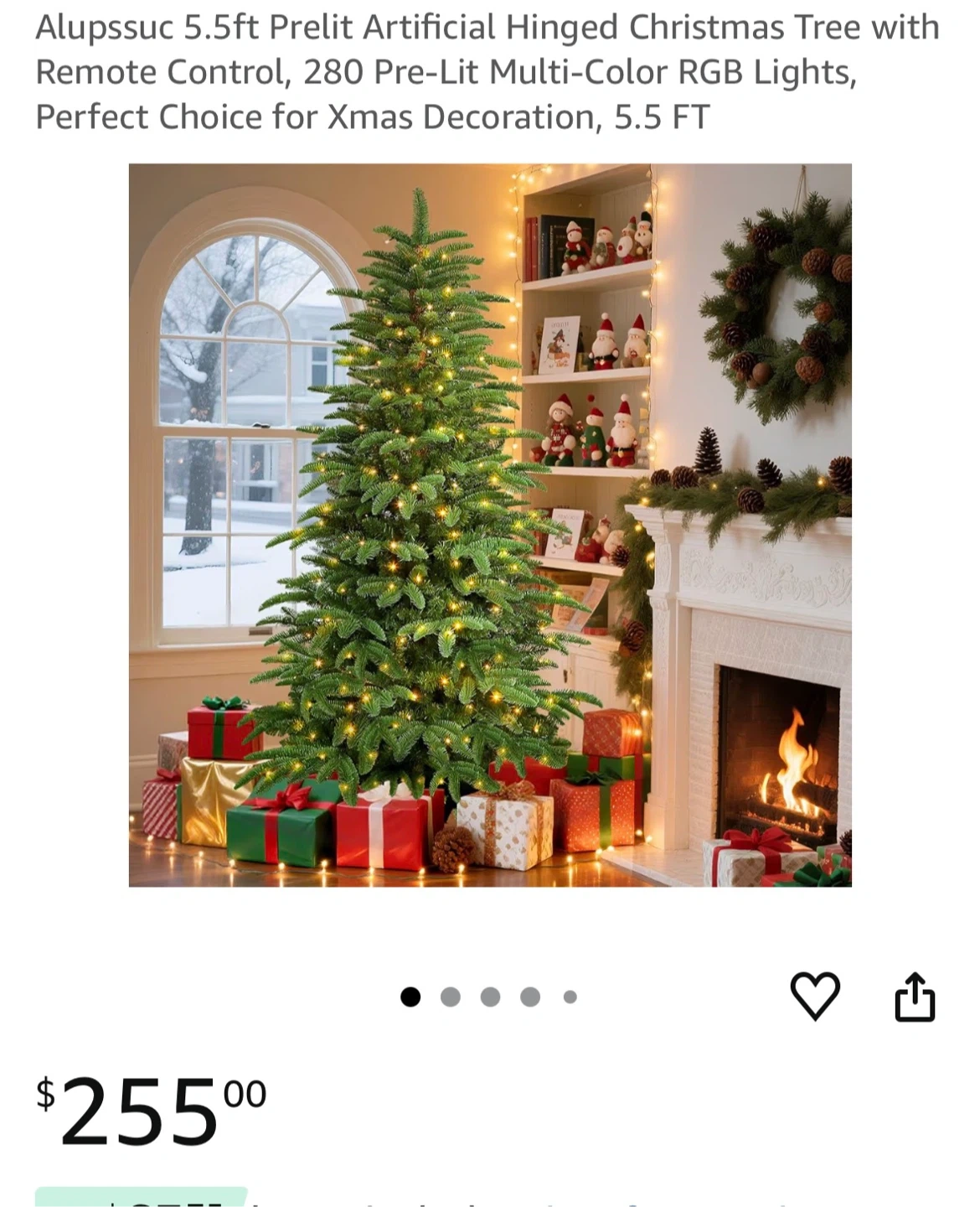 Selling a 5.5ft prelit artificial hinged Christmas tree! It comes with remote control and 280 pre-lit multi-color RGB lights. Perfect for Christmas decoration. It is 5.5 FT tall. It comes with the box
