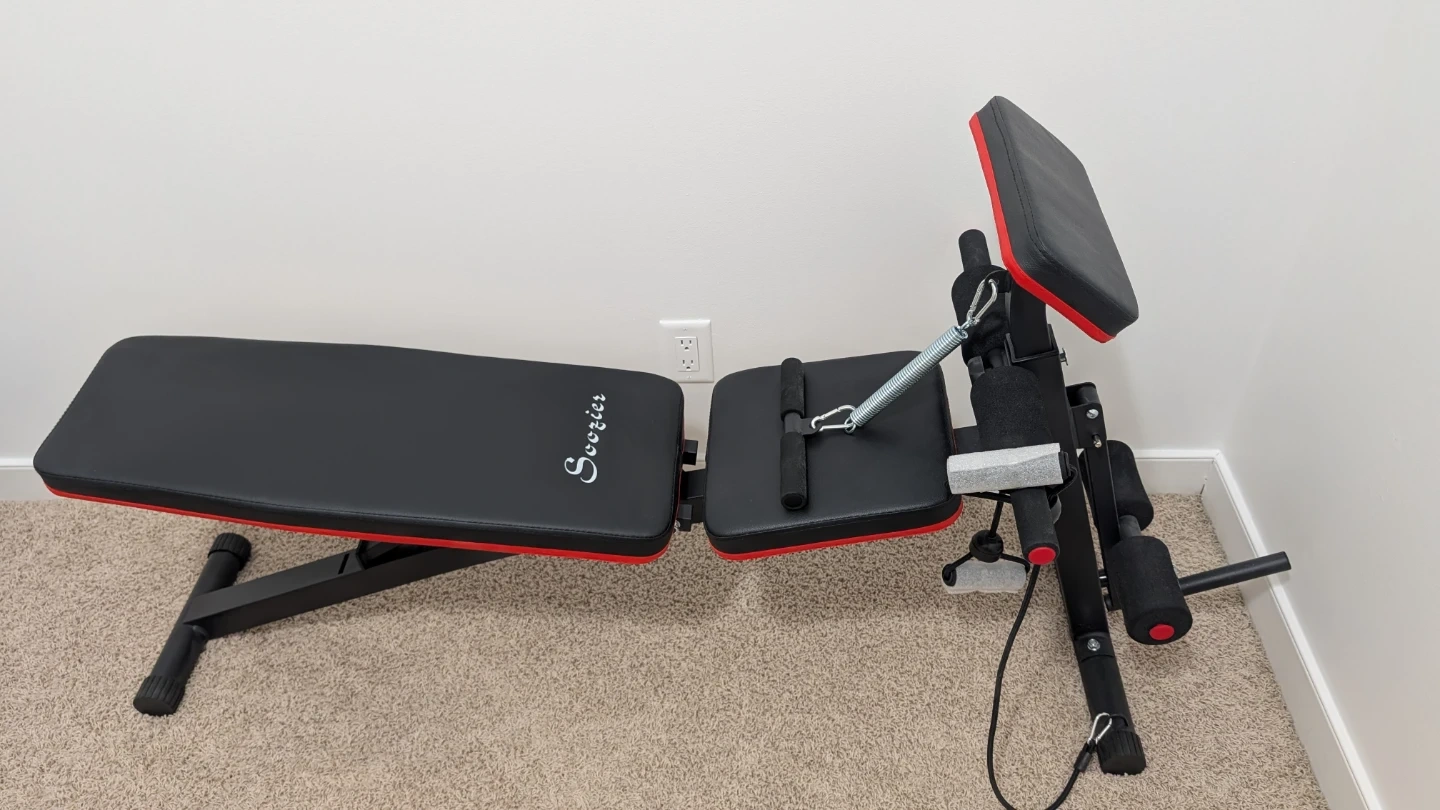 Selling a Soozier adjustable weight bench in black and red. This bench is perfect for various exercises and can be adjusted to different positions. It's in great condition and ready for your home gym!